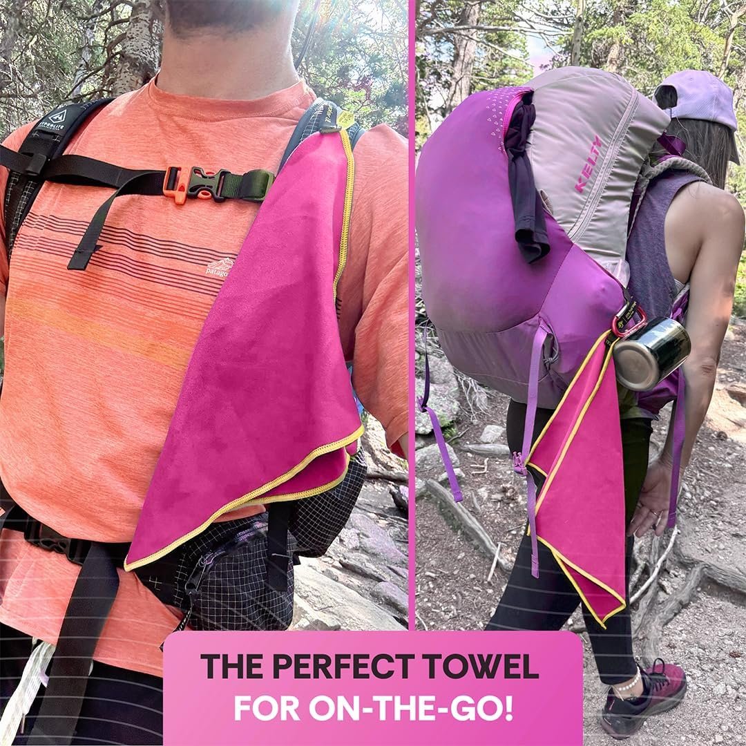 Backpacking Ultralight Quick Dry Microfiber Soft Fast Drying Hand and Face Towel Wash Cloth Camping Yoga Hiking Active Lifestyle Small (Magenta, Small)