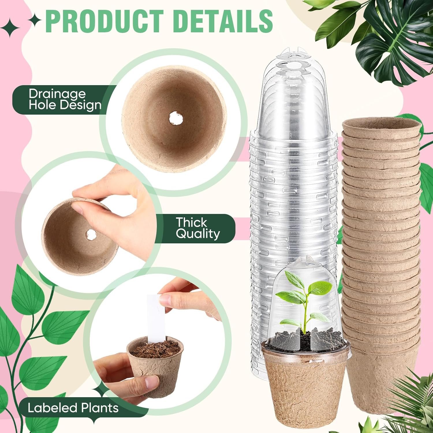 Package Includes: you will receive 120 biodegradable nursery pots with drainage holes, 30 humidity domes, 30 plant labels, and 2 transplant tools; A comprehensive set of products to make it easy to start raising seedlings indoors and outdoors