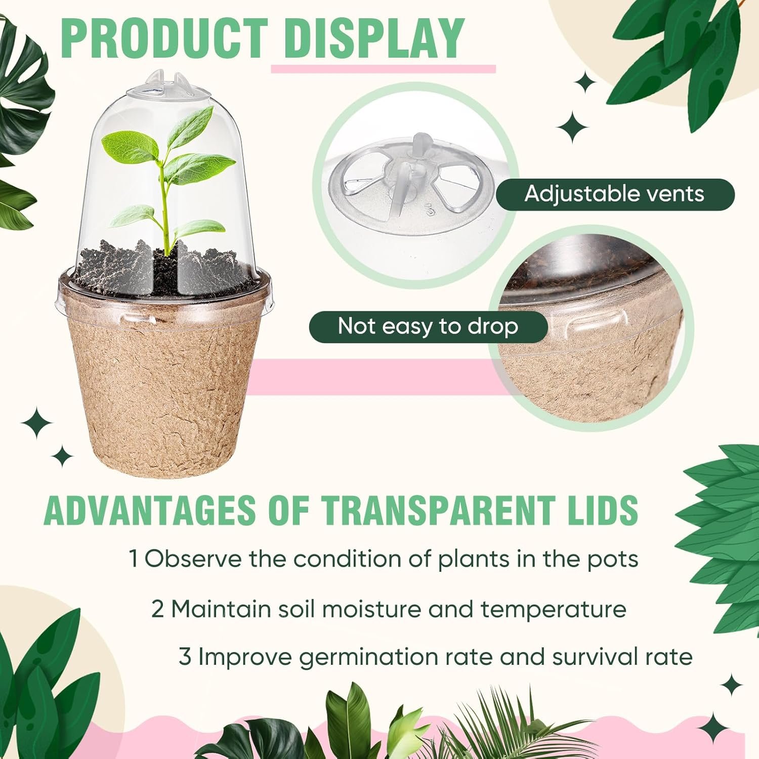 Transparent Humidity Dome: this cover allows users to conveniently observe the condition of the plants in the pot; It has ventilation holes to keep the soil moist and warm, maintain humidity, improving germination rates