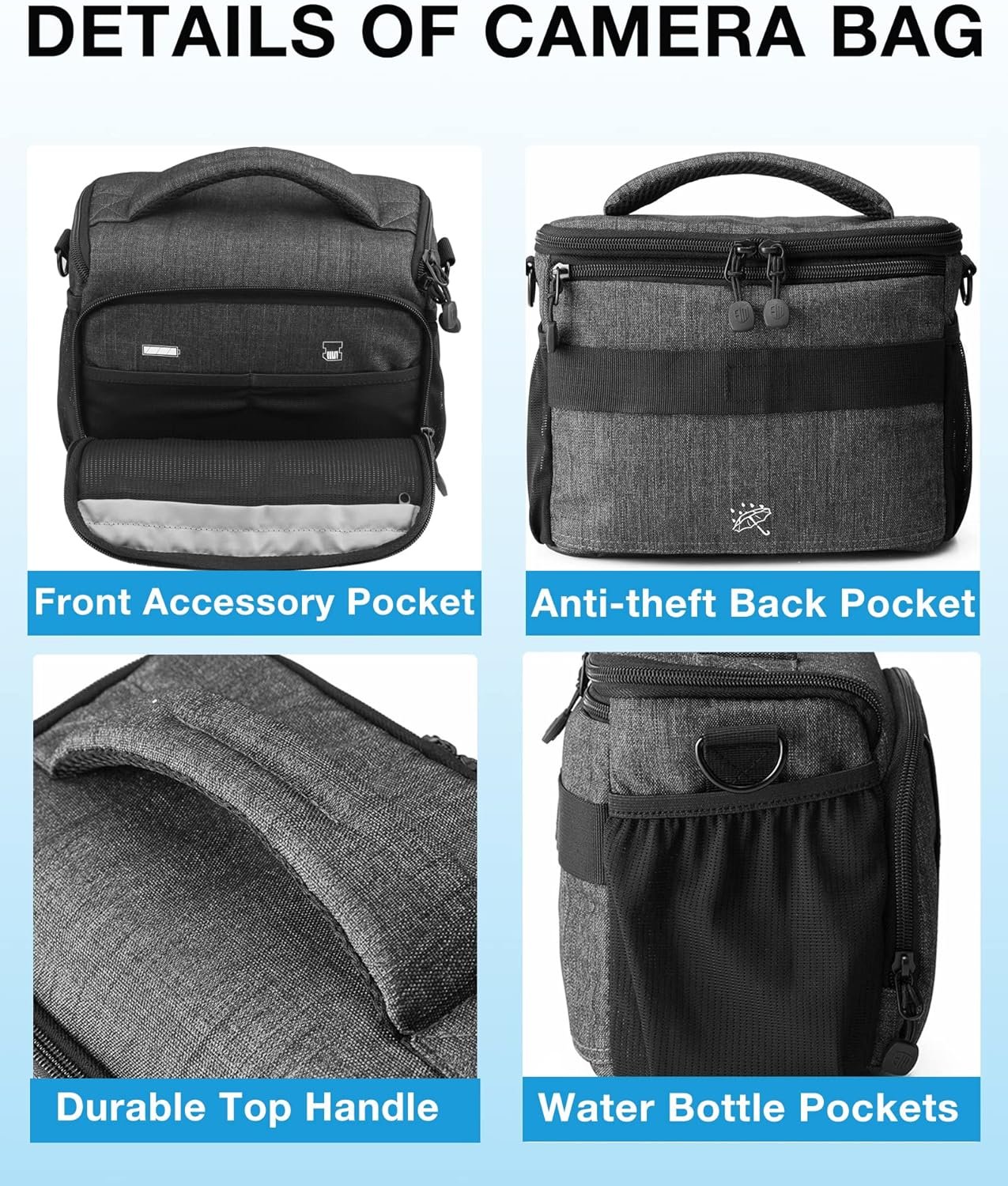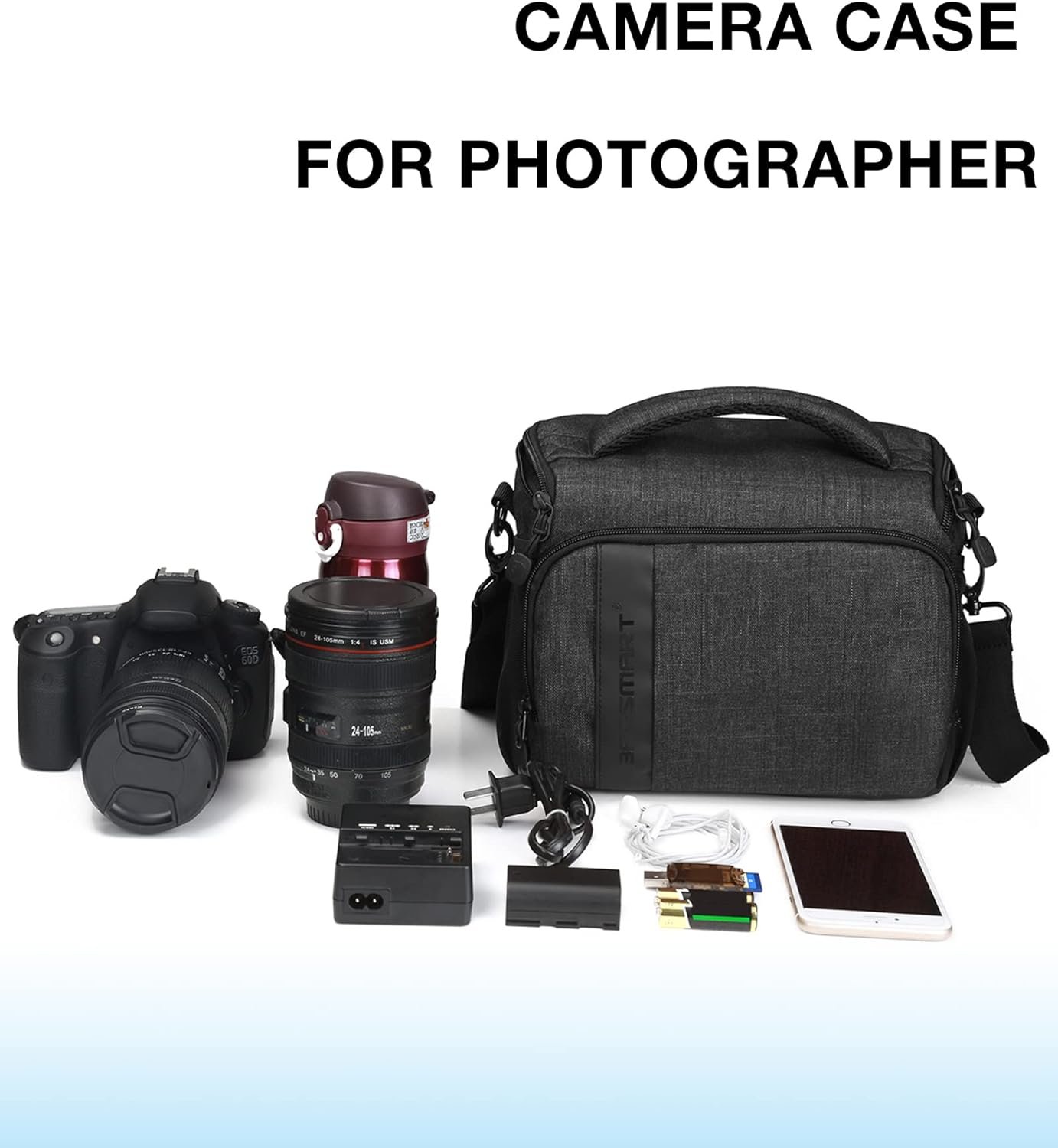BAGSMART Camera Bag Padded Camera Shoulder Bag for Photographers, Waterproof Camera Bags & Cases with Rain Cover for SLR DSLR, Lenses, Accessories, Grey