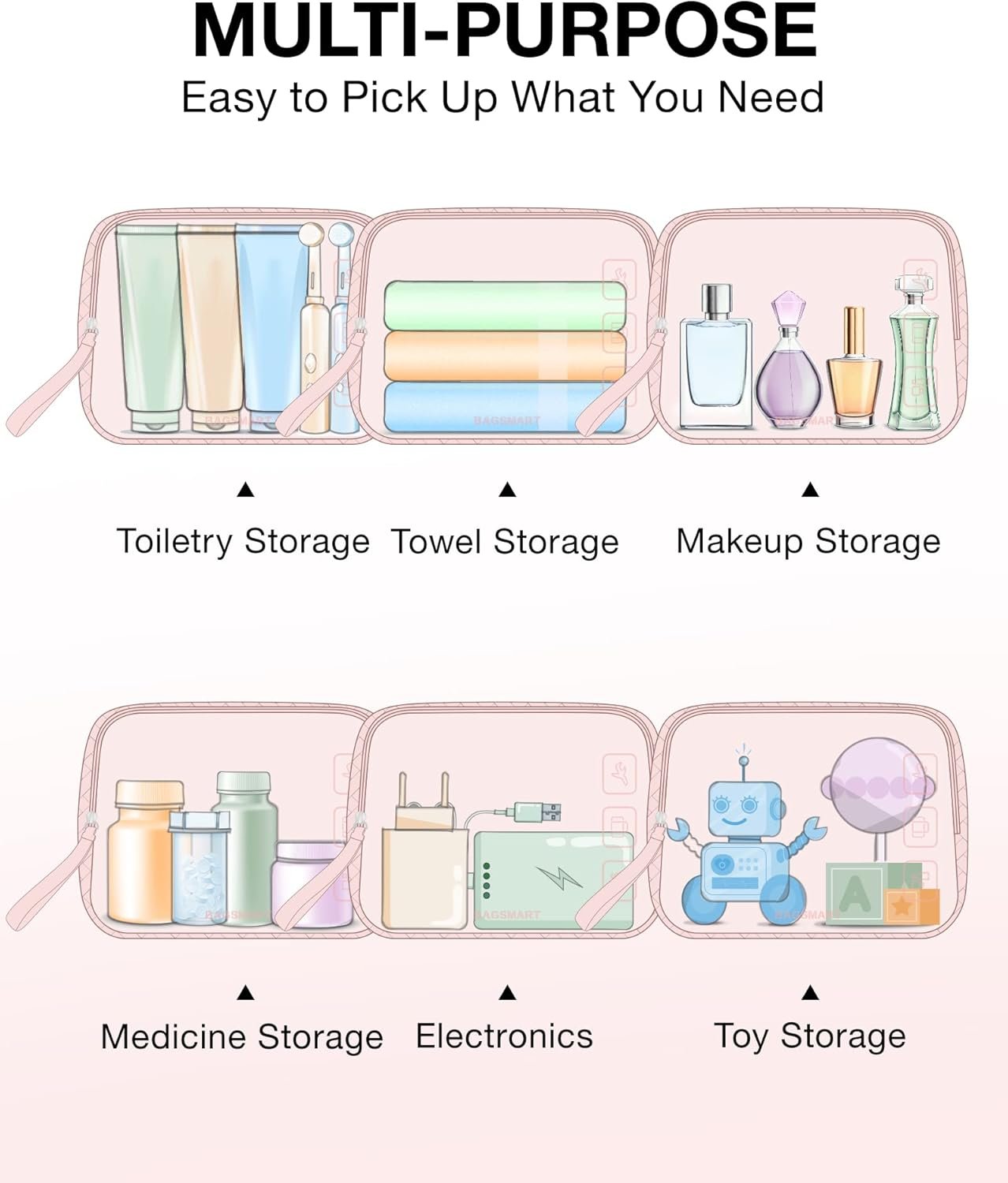 Travel Accessories: Bagsmart toiletry bag can be a cosmetic bag, toiletry bag, grocery bag, toy bag, medicine bag, skincare bag, electronics bag, stationery bag, storage bag, etc.