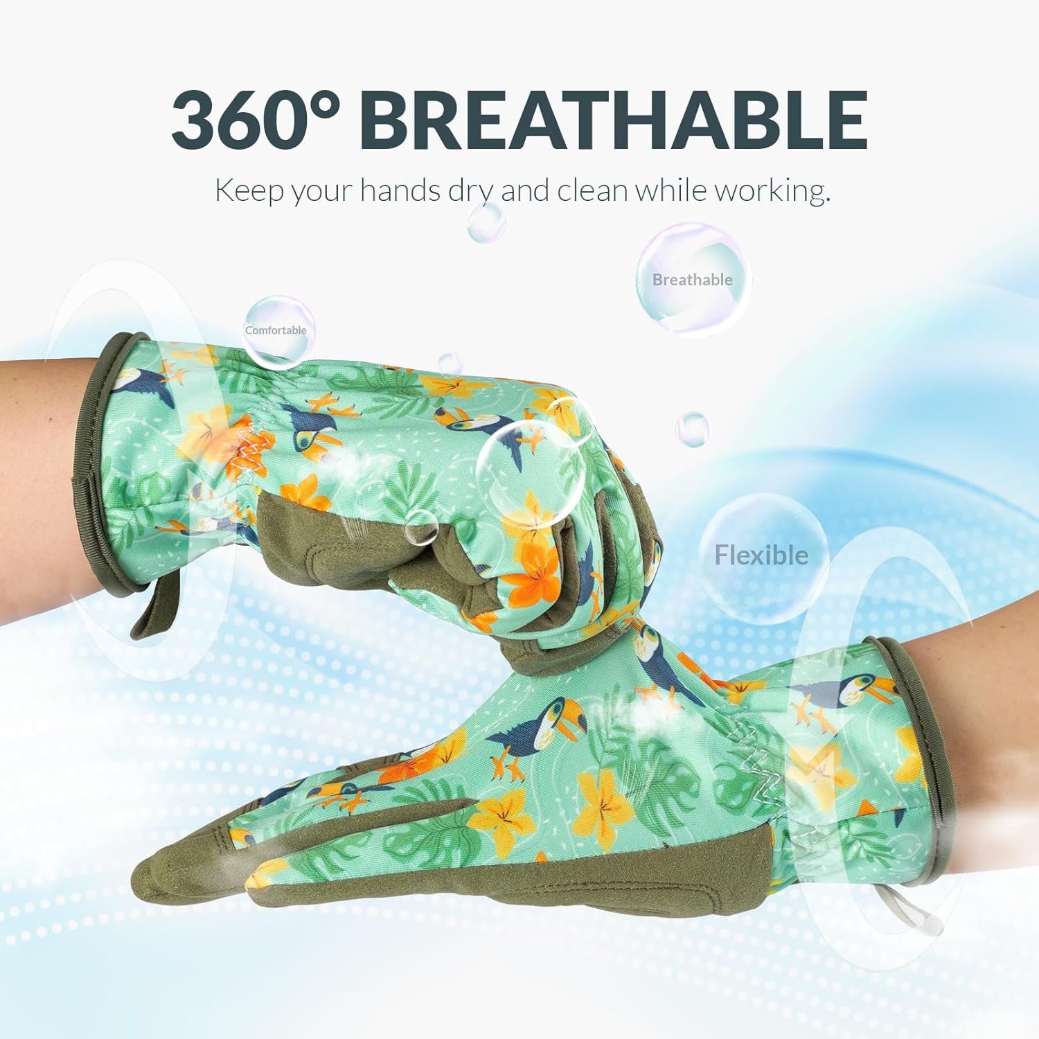 【Breathable & Flexible】Our gardening gloves has moisture wicking layers inside keep your hands sweat free,you can work easily and freely even in summer.Elastic material makes you feel your hands working freely.