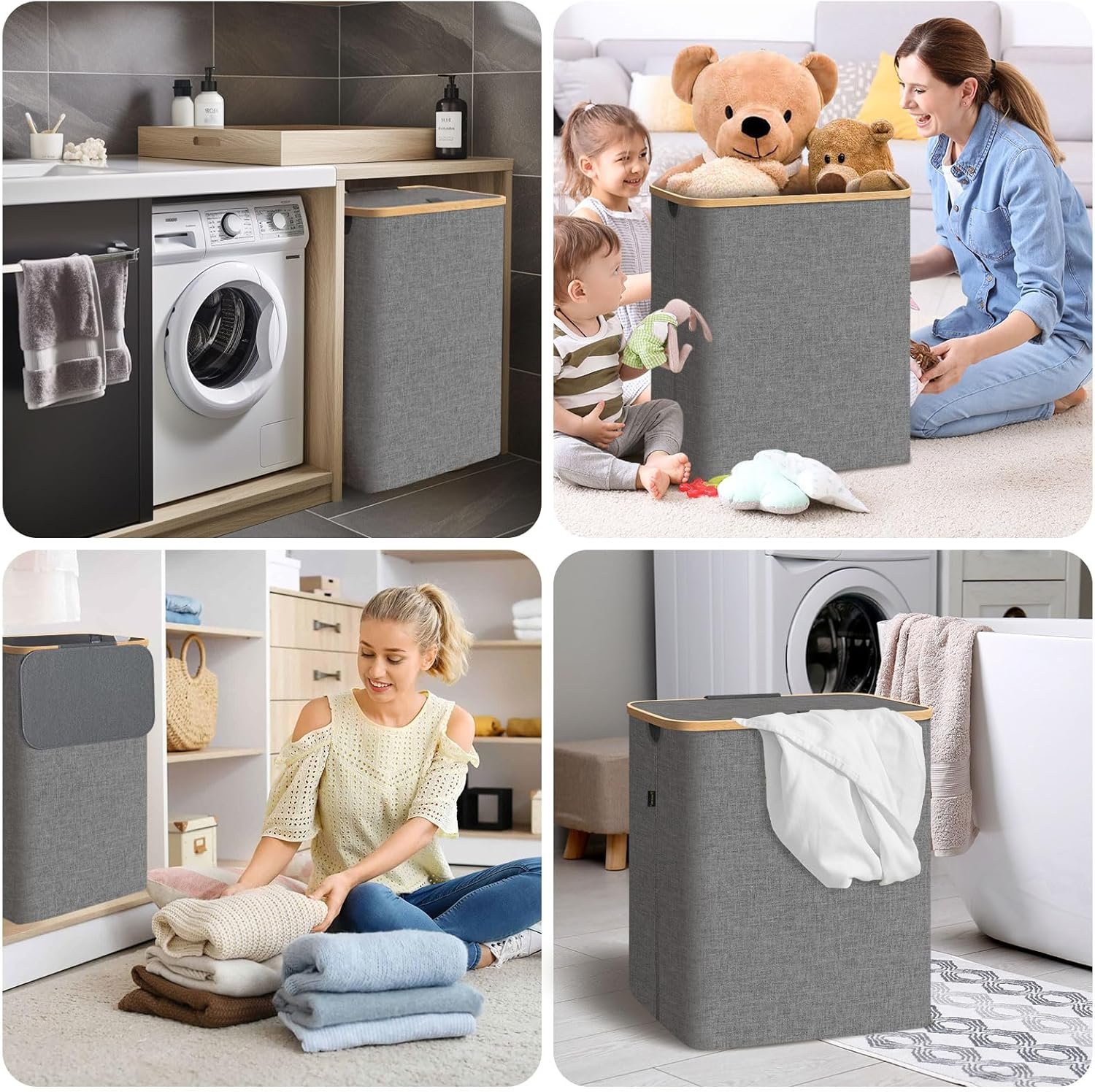 [DURABLE AND ECO-FRIENDLY] We care about the environment, which is why our laundry hamper is made from sustainable bamboo rim. Bamboo is known for its exceptional strength and durability, ensuring this clothes hamper’s handle will withstand the test of time. By choosing our eco-friendly laundry basket organizer, you’re making a conscious decision to reduce your carbon footprint.