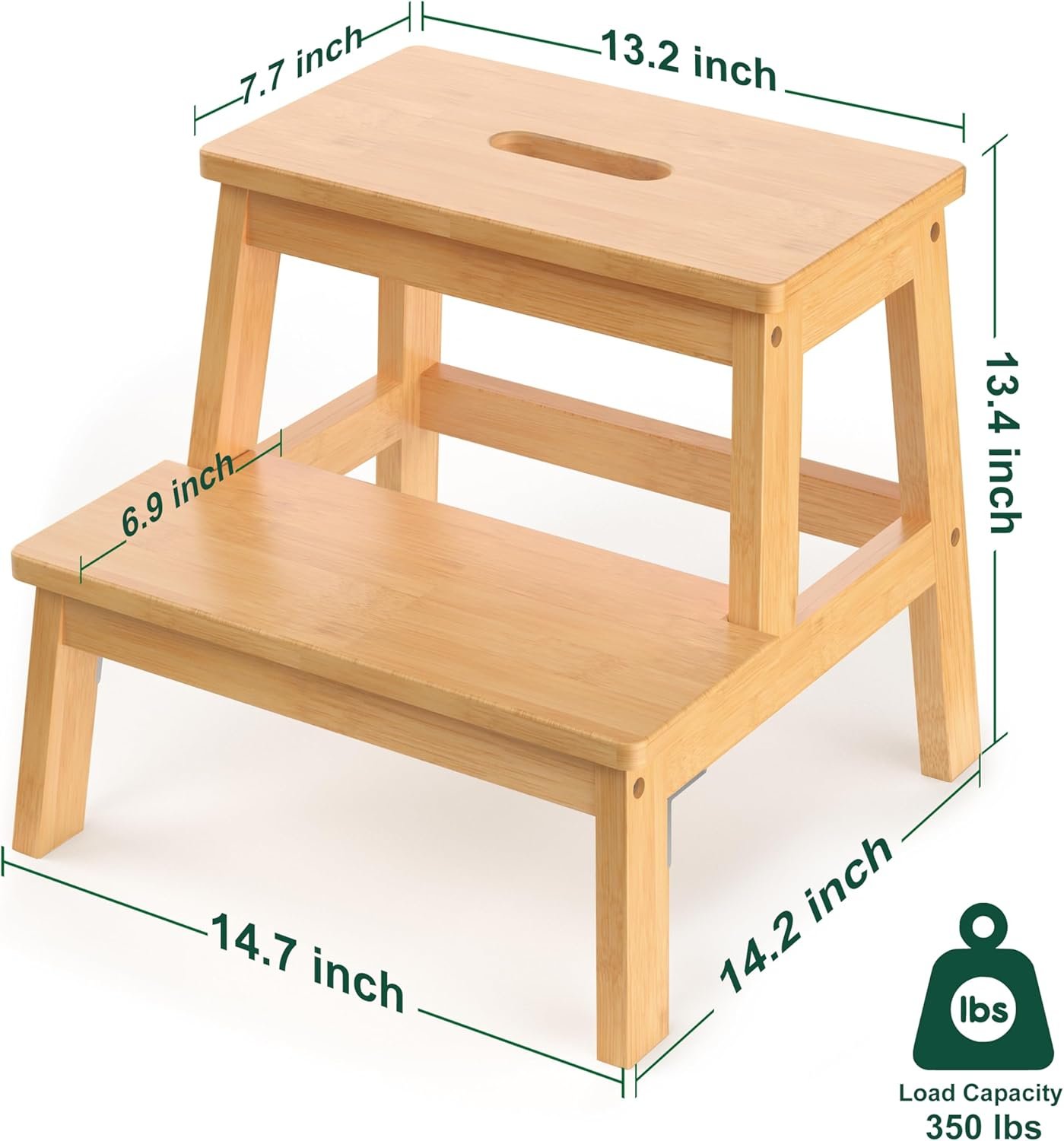 [100% Natural Bamboo]: Made from sustainable bamboo with a non-toxic finish, this 2 step stool is durable, and safe for kids. Its natural look fits any home decor.