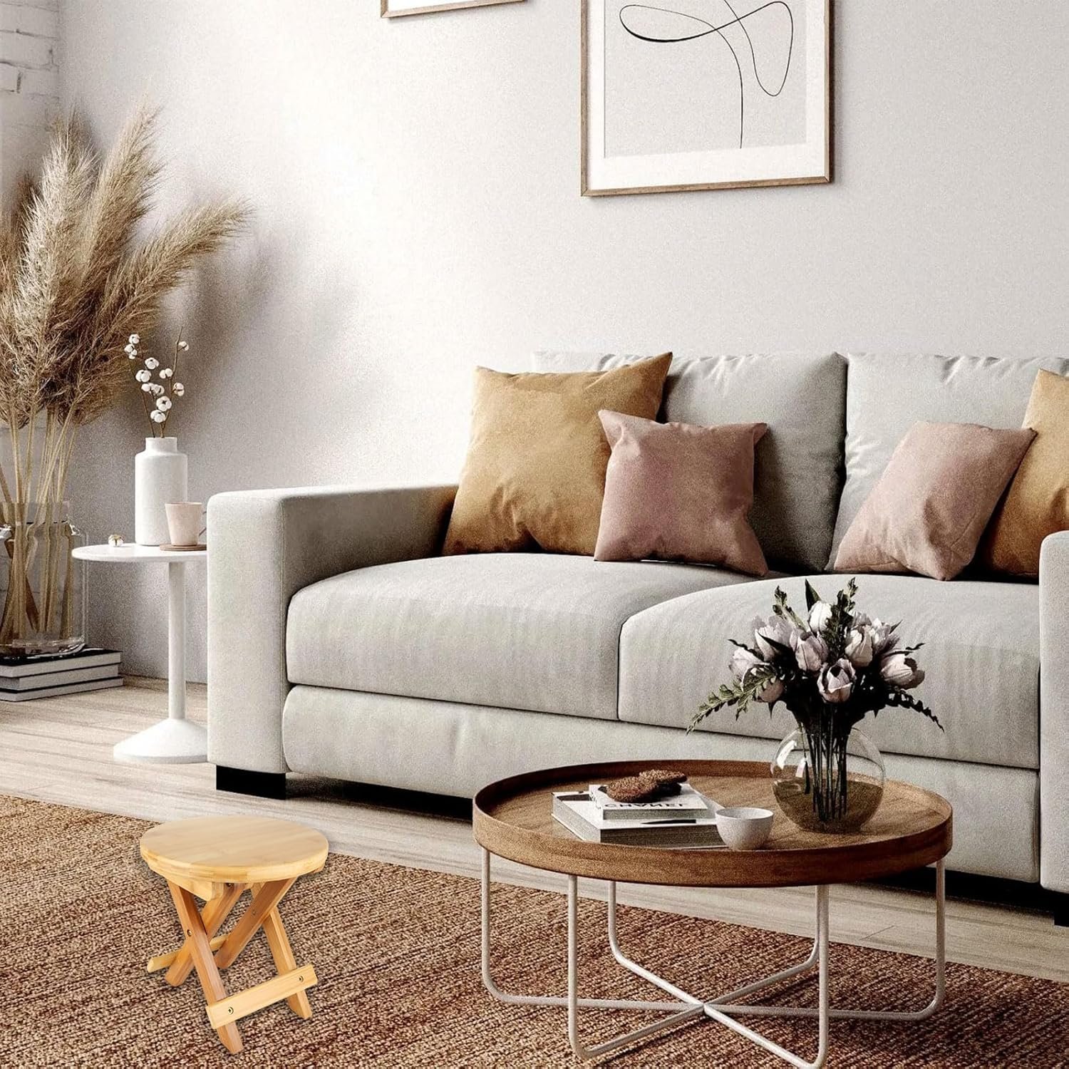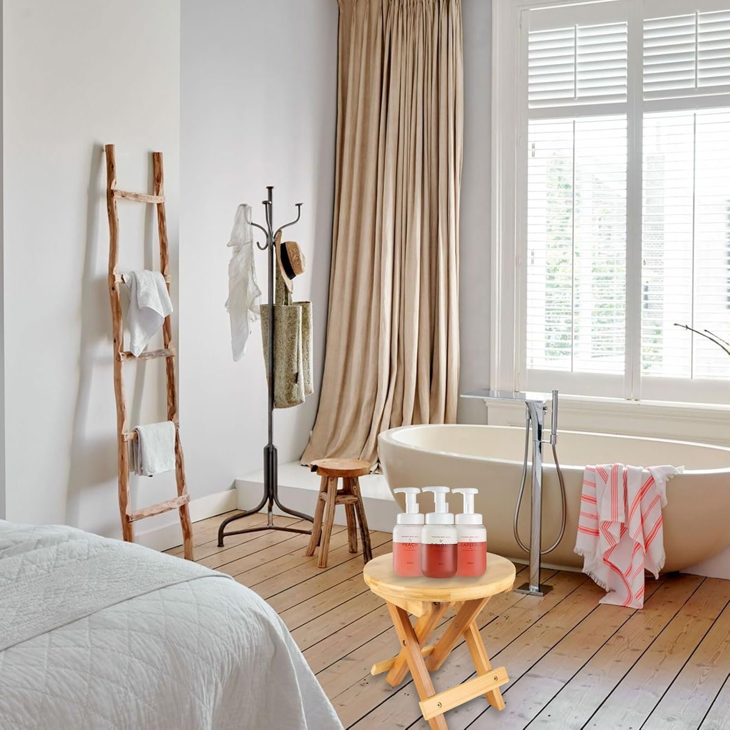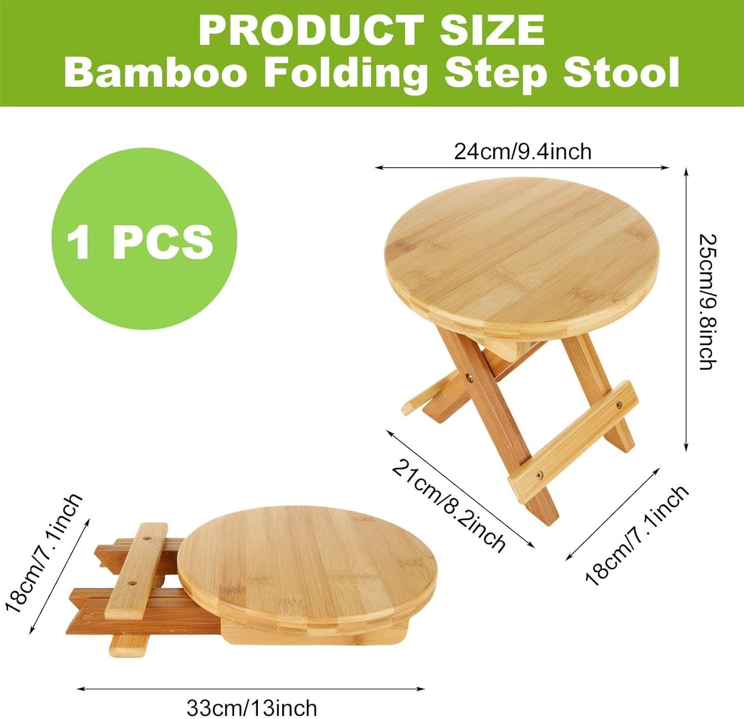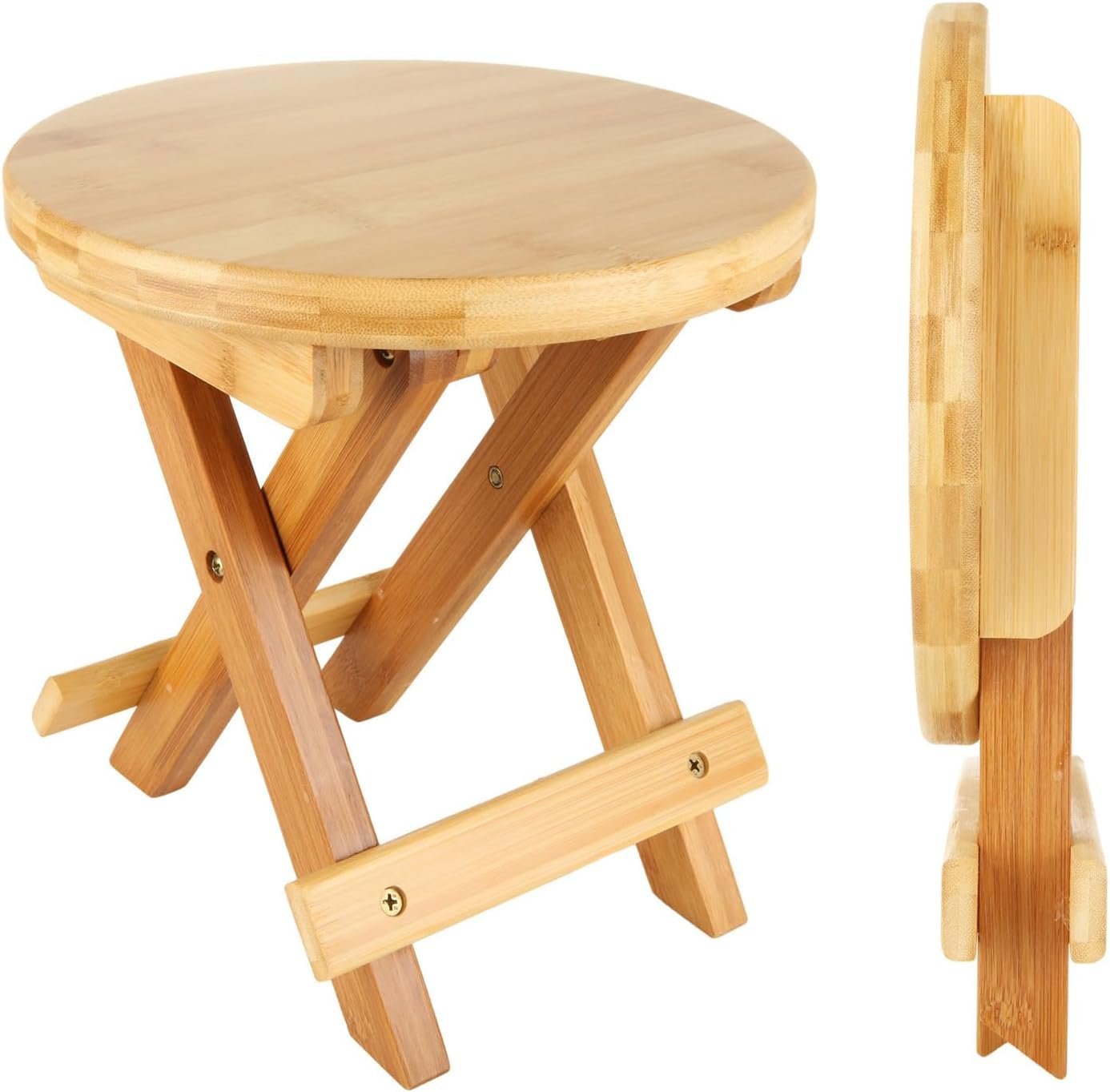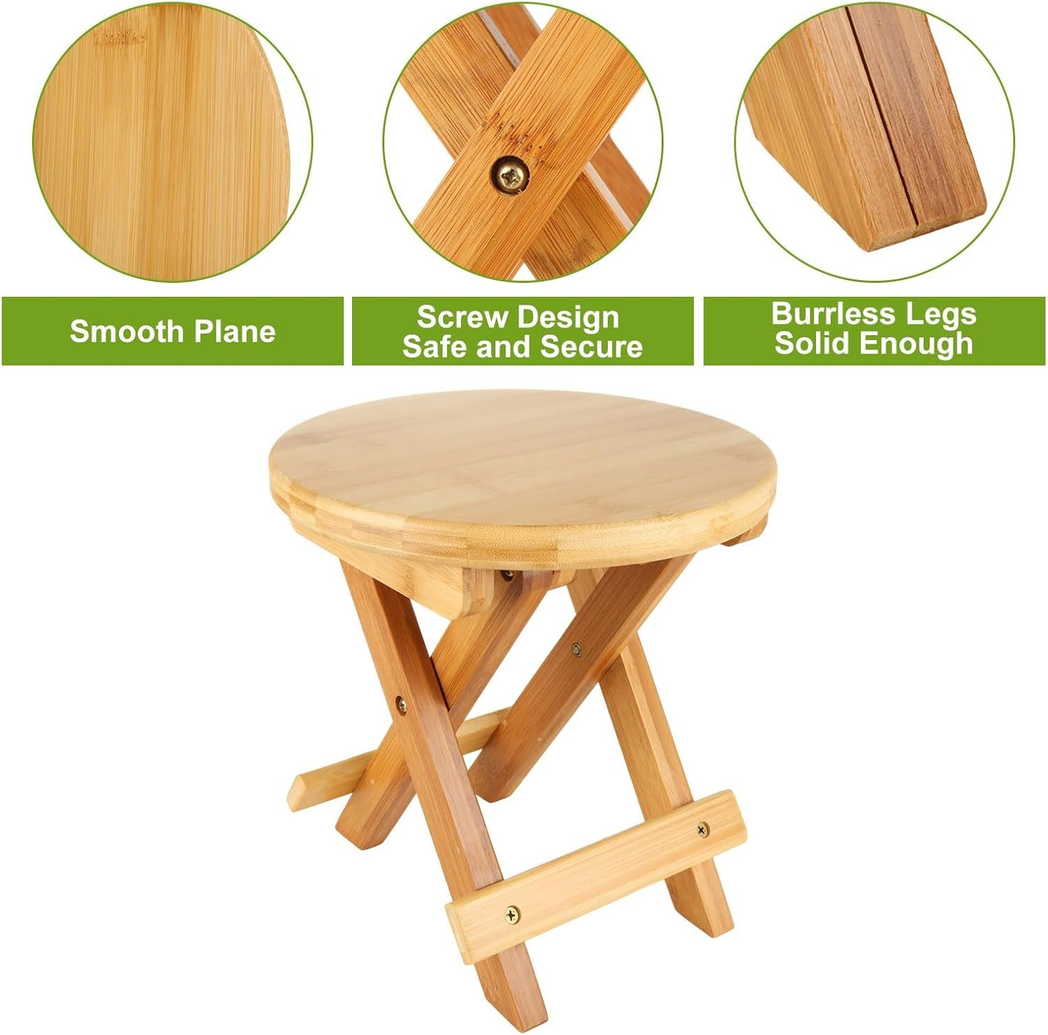 Bamboo Folding Step Stool – 9 Inch High Bamboo Shower Bench Stool, Natural Bamboo Folding Stool, Folding Bamboo Shower Seat for Shower, Leg Shaving and Foot Rest, Fully Assembled (Round)