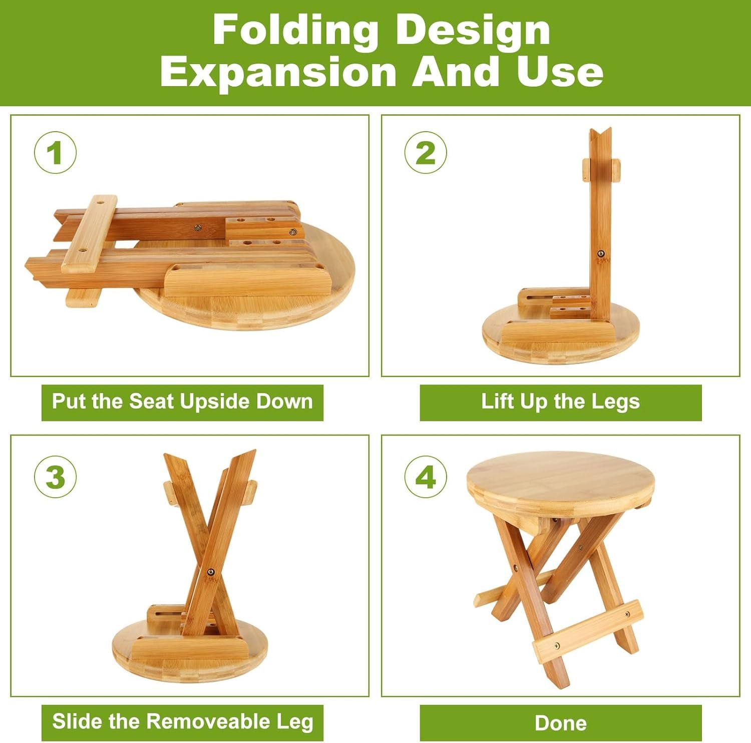 PACKAGE INCLUDE: You will receive a natural bamboo shower bench stool that unfolds in inches and folds in inches, making it safe to use and durable