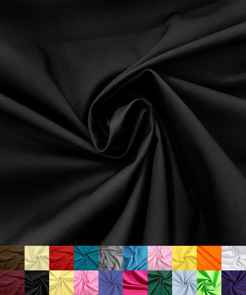 Barcelonetta | Poly Cotton Fabric for Sewing | Broadcloth Fabric | by The Yard | 60″ Wide Roll | Lightweight, Breathable | Lining, Home Textile, Skirts, Tote Bags (Black, 5 Yard)