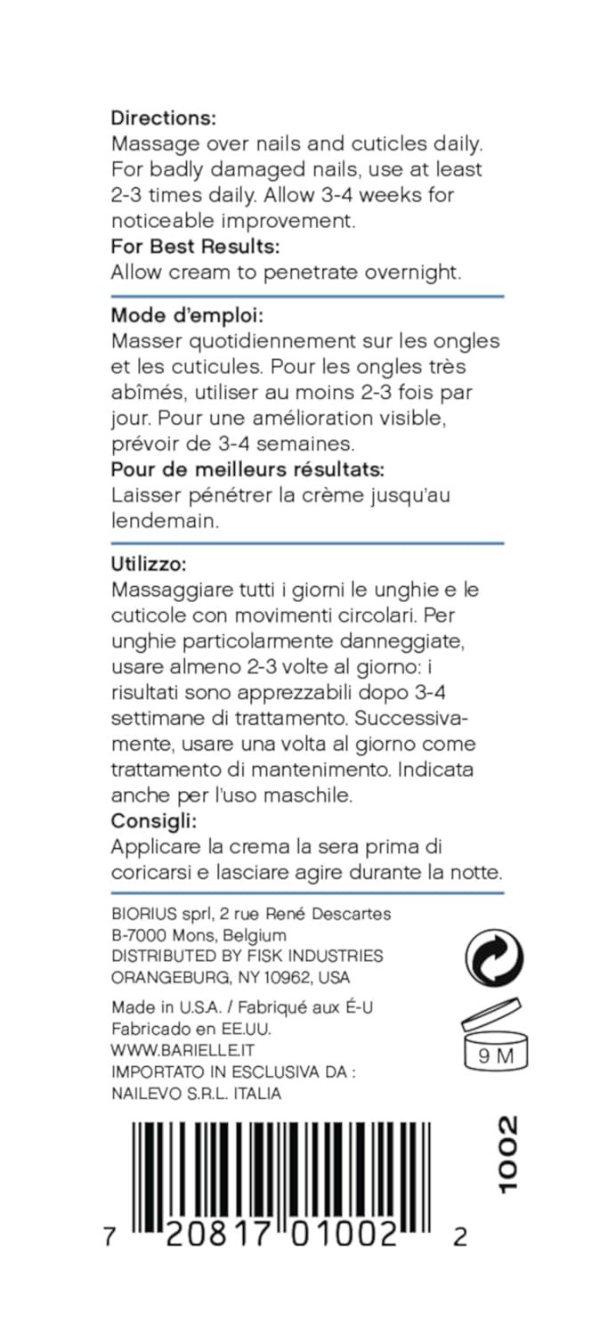 Barielle’s Nail Strengthener Cream, breakthrough formulation that helps nails grow healthier and stronger, resists splits, peels and breaks, and prevents splitting, cracks and ridges.