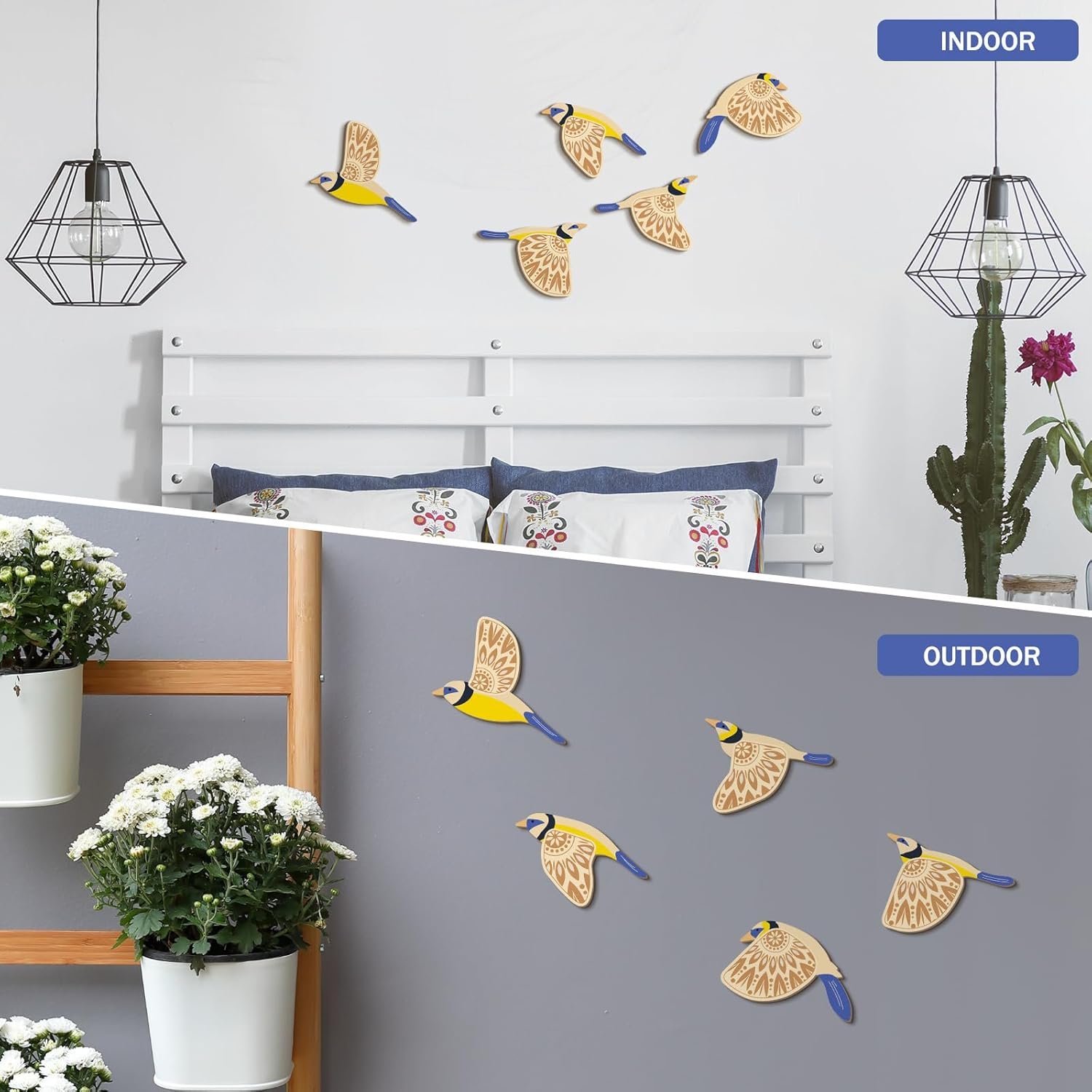 Easy and Effortless Installation: with each birds wall art outfitted with a hook, installation is a breeze; These pieces can be effortlessly hung on the spot of your preference, be it indoors or outdoors, with easy assembly and disassembly making redecorating hassle free