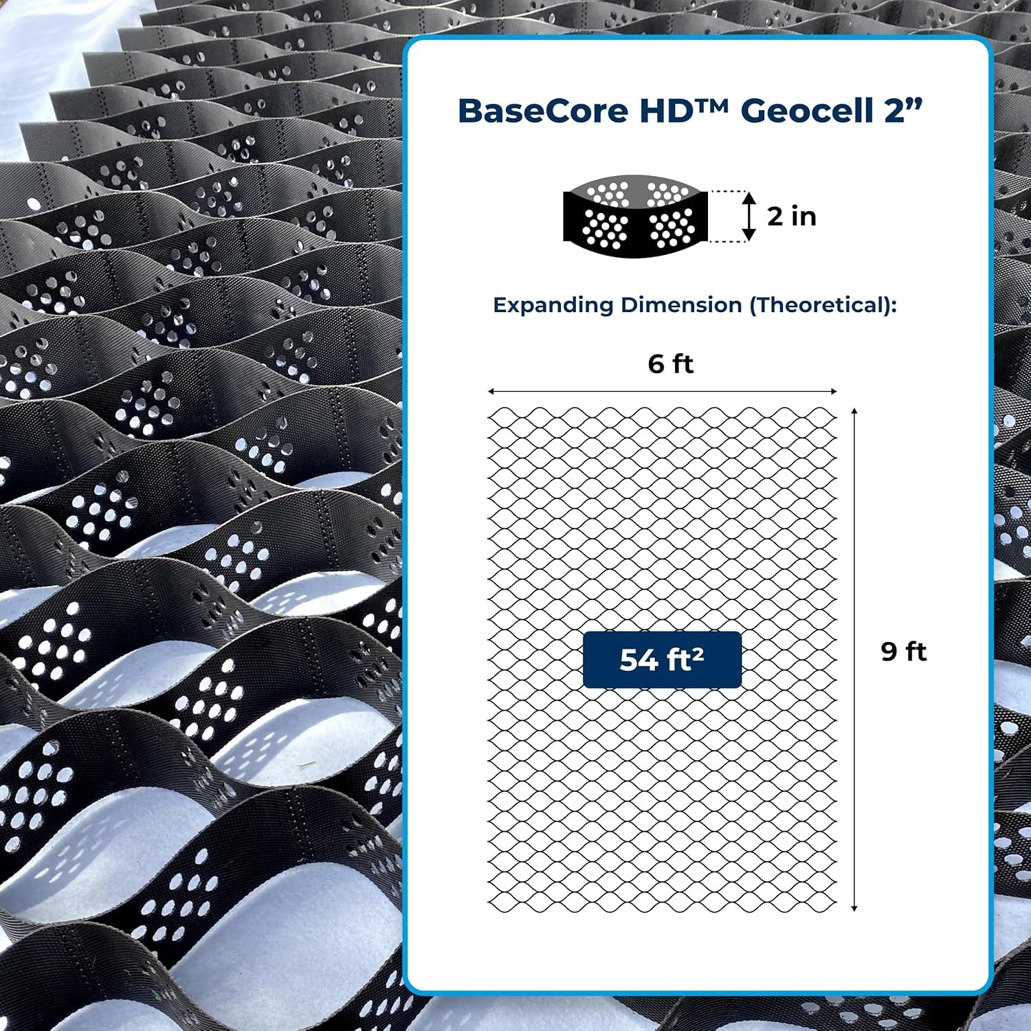 BaseCore HD™ 2″ Geocell Ground Grid | 6 x 9 ft Commercial Grade Gravel Grid for Driveway, Parking, Slope | Heavy Duty Stabilizer for Landscaping, Sheds, Pathway & Erosion Control – 1 Panel 54 sq ft