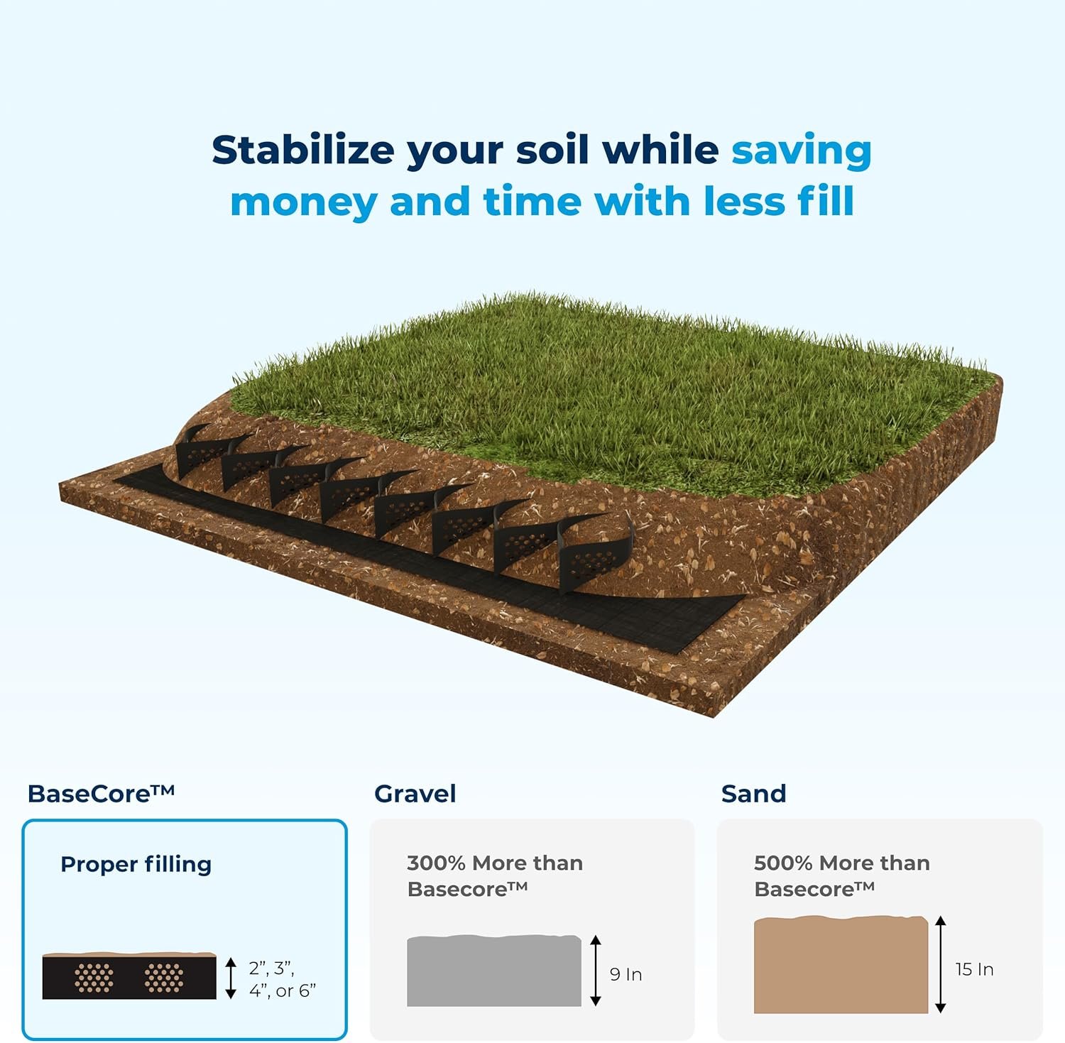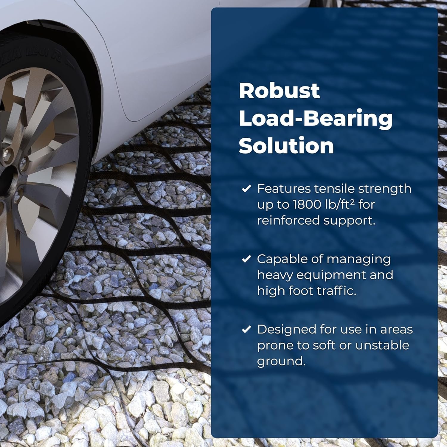 STRONGER THAN COMPETITION: The BaseCore HD geo grid for gravel features double-weld seams with tensile strength over 2000 LBS/SQ FT. Our HD cell size is 50% smaller than competitors, offering more material, better stabilization, less fill, and higher load capacity.