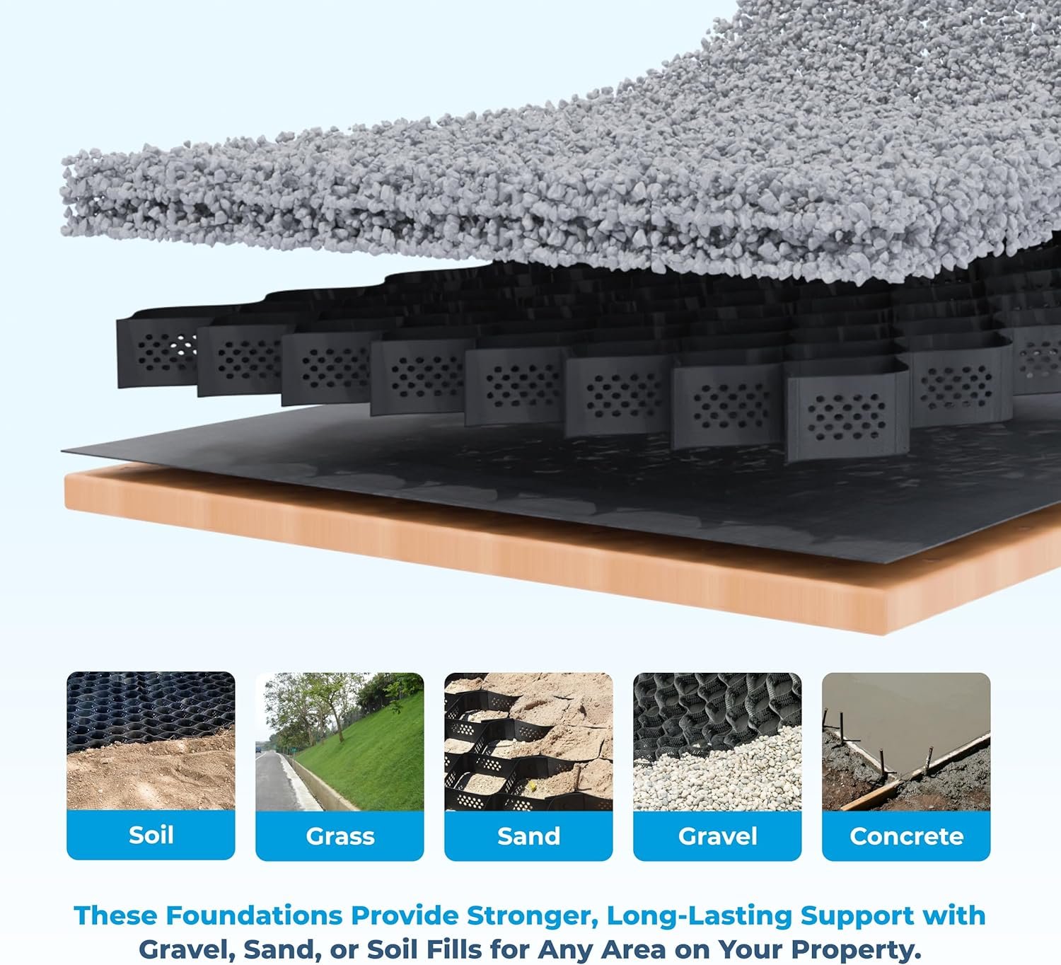 STRONG & DURABLE: Our grid patterns for gravel offer high tensile strength, designed to endure large lateral forces in any climate. Made for building a shed base, installing walkways, patios, or trails, or constructing light-duty parking pads, gravel provides the versatility you need.