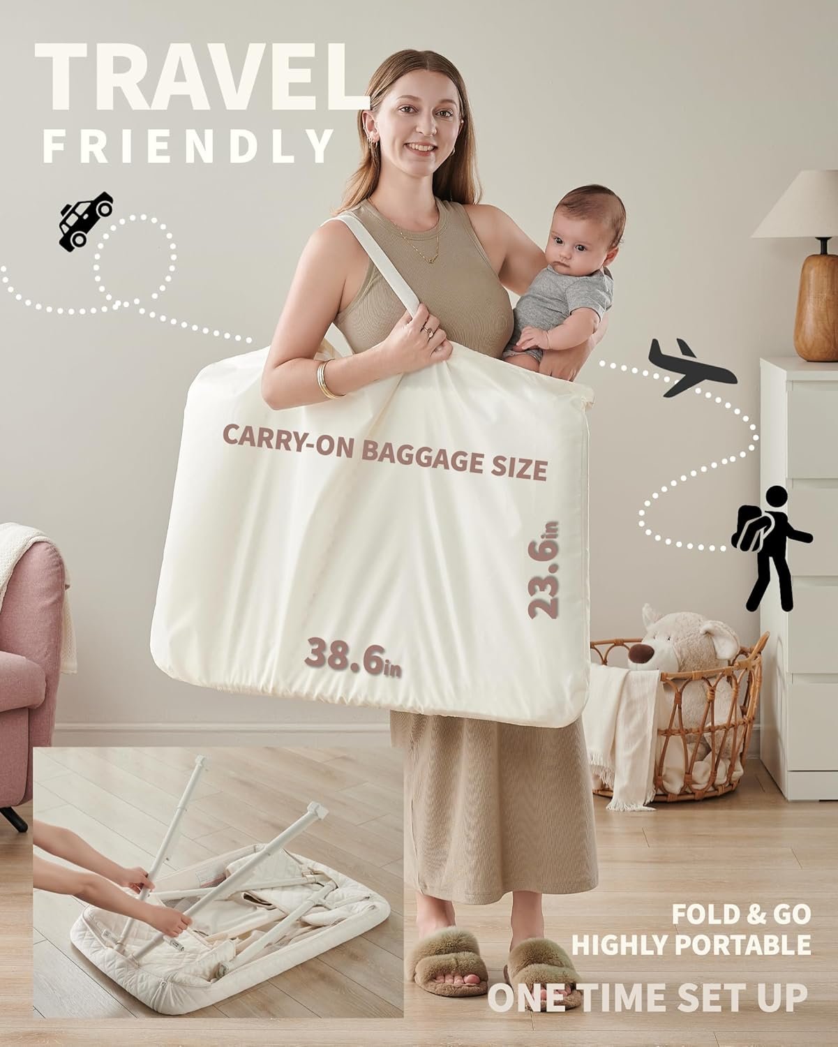 【RETRACTABLE SIDE|ZIPPER SCURED BEDSIDE SLEEPER】AirClub bedside bassinet for baby has a retractable side that can be UP/DOWN to provide direct access to your baby for a middle-of-the-night feeding, comforting, ideal for mum has C-section. The second layer bassinet bedside sleeper is secured by a zipper, making sure the second layer won’t collapse to one side.