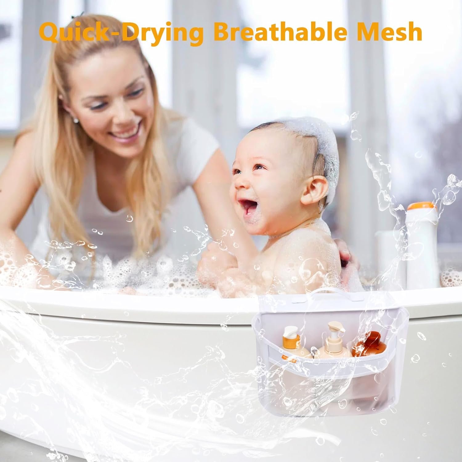 Bath Toy Organizer with 2 Pockets, Large Capacity Mesh Storage with Grip, Quick Dry, Perfect for Organizing Toys and Bath Essentials, Fits 6-Inch Tub Edges