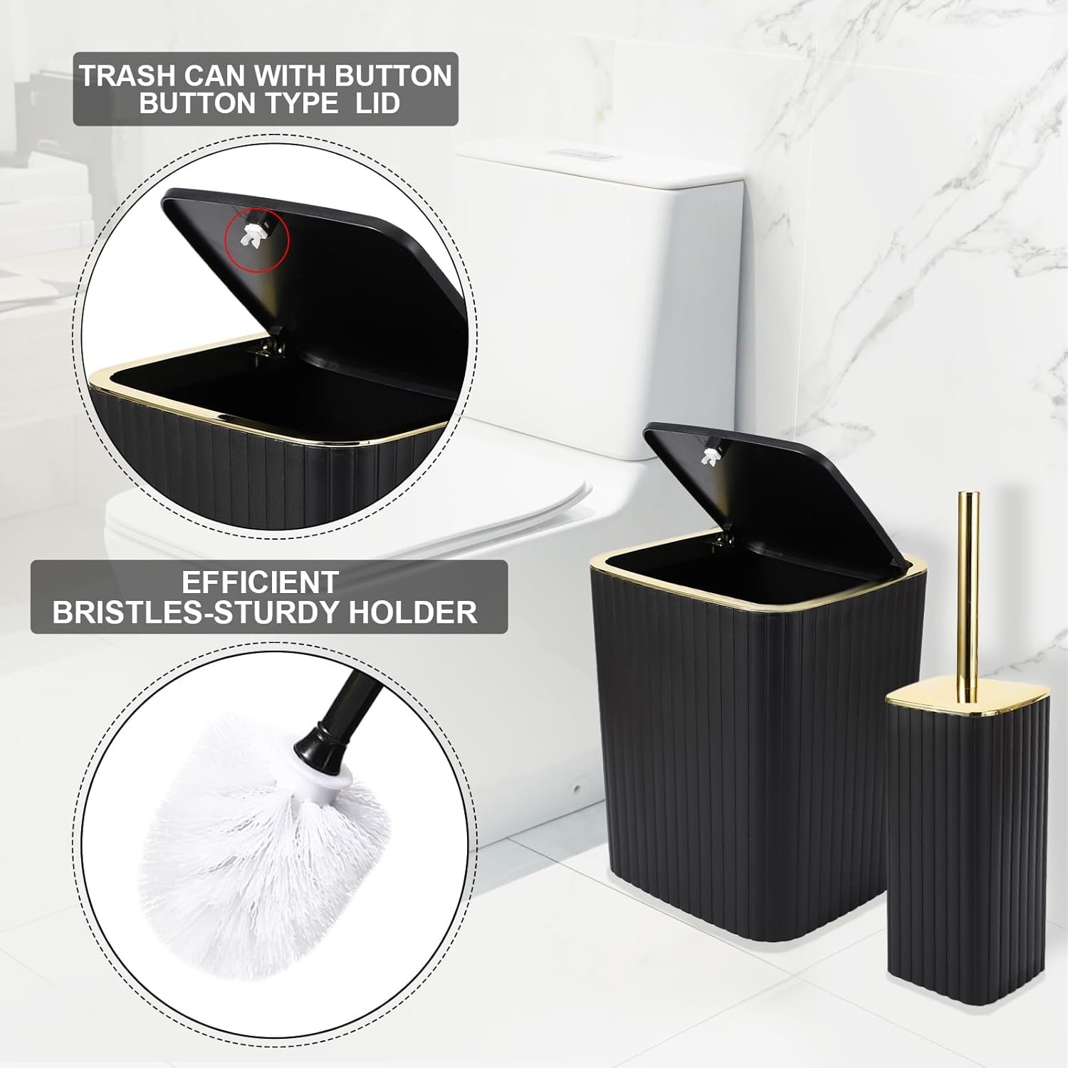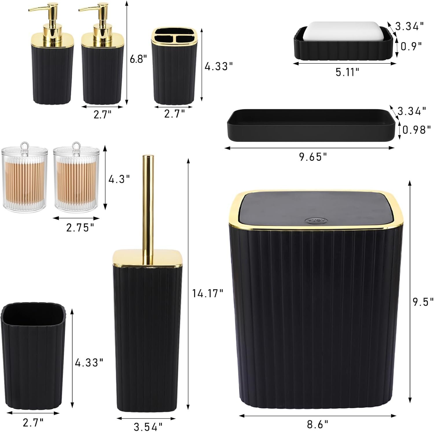Bathroom Accessories Set – Gorgeous Black Bathroom Set, 10PC Bathroom Accessory Set, Toilet Brush, Trash Can, Qtip Holder & Soap Dispenser