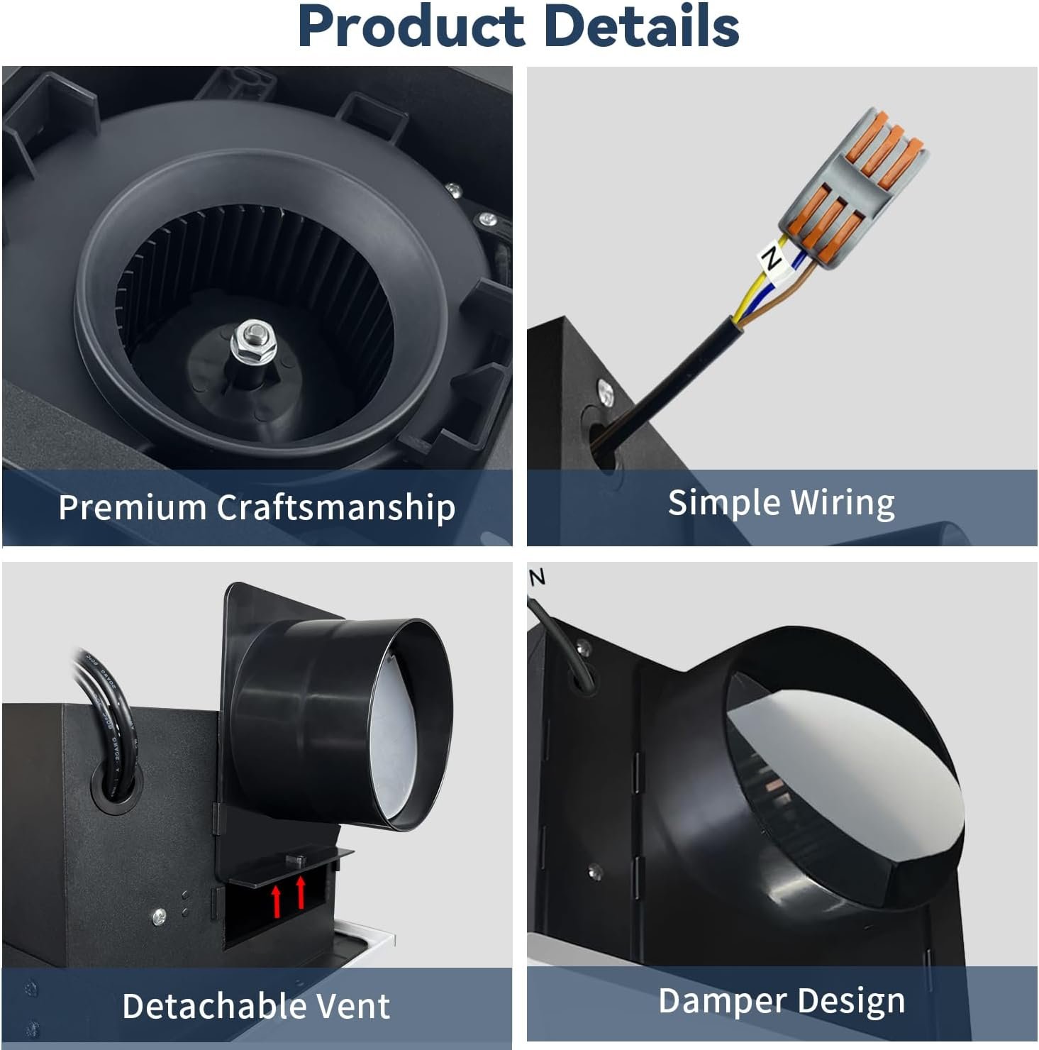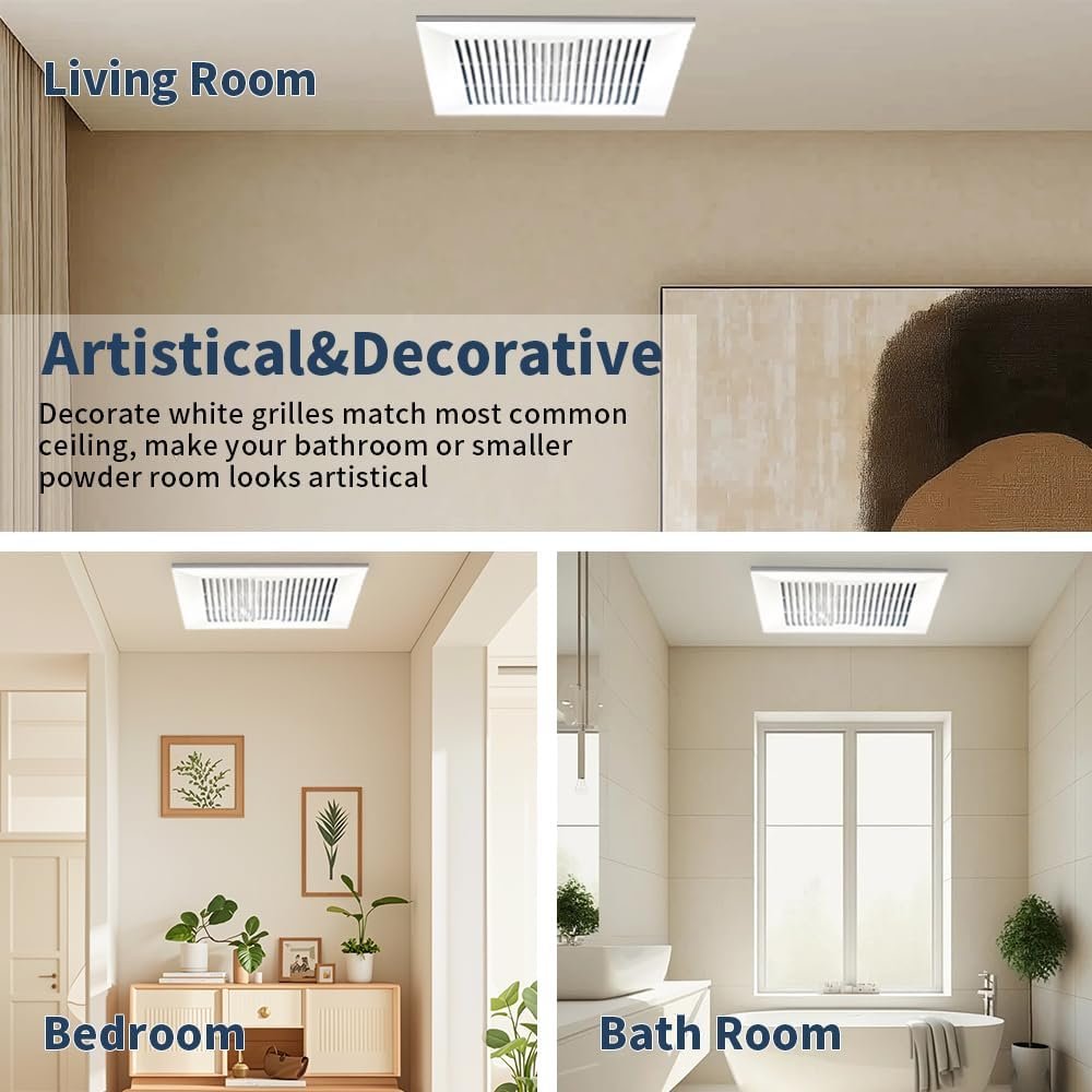 Super Quiet and Effective – This 8 x 8inch bathroom fart fan use premium material, which makes the operation ultra quiet and efficient, with excellent inside motor performance, allow this bathroom ventilation fan working life at least 50000hours