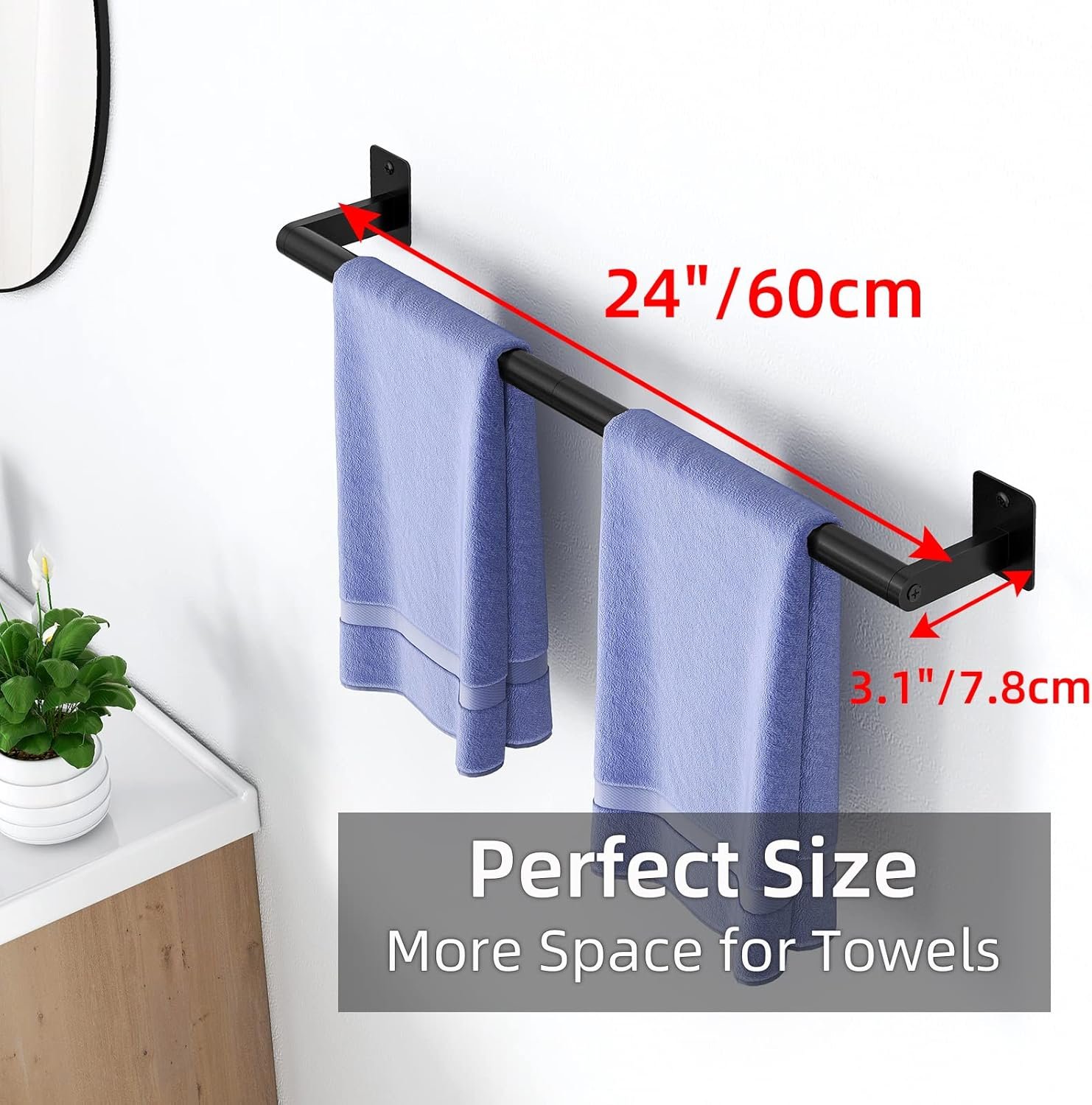 ❤️【Perfectly Size】 — The towel bar is 24in/60cm in length, 3.1 in wall spacing, proper wall spacing keeps towel drying quicker, making it perfectly for most bathroom spaces. It can easily hold multiple towels or robes, helping to keep your bathroom organized and tidy .