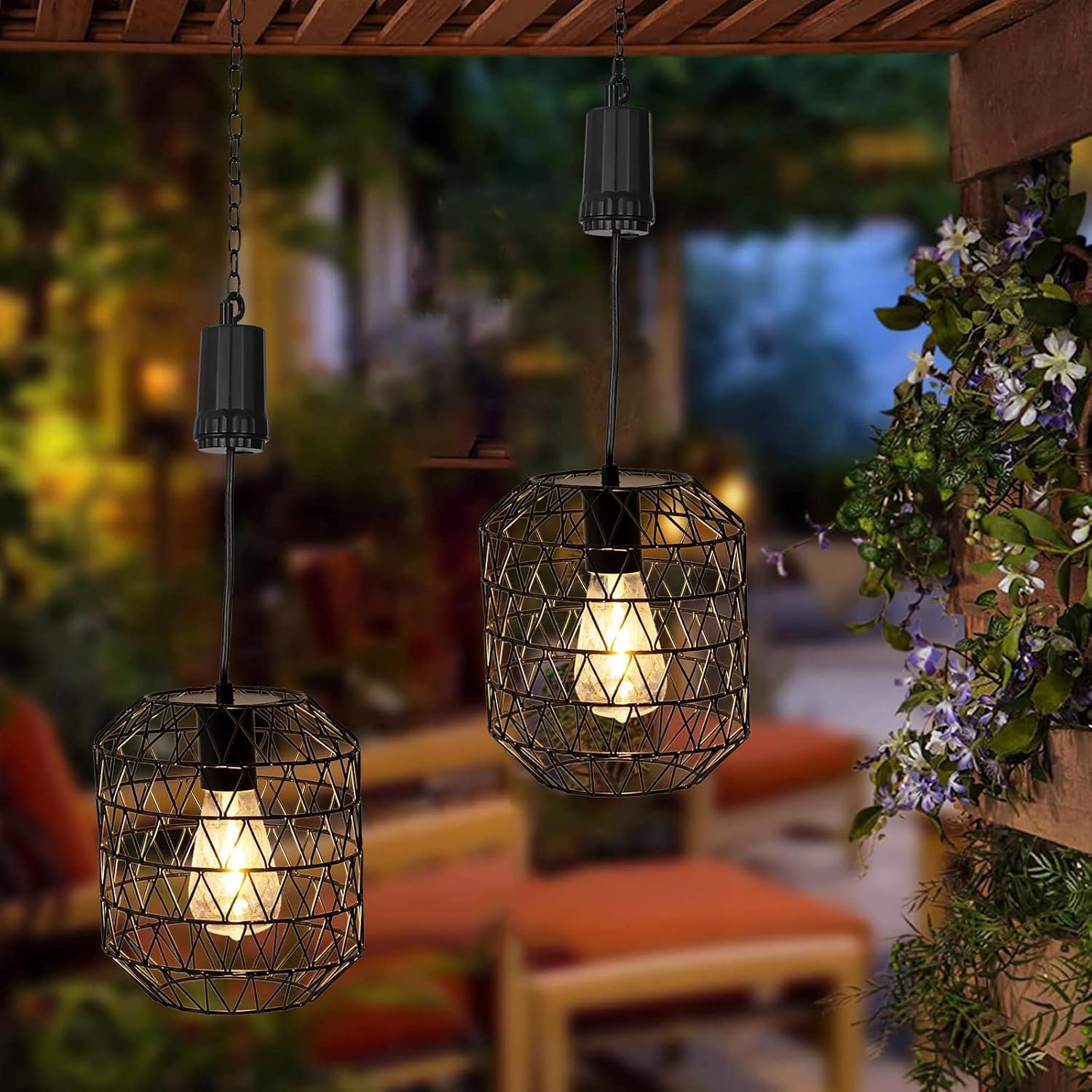 Stable structure & practicality: With adjustable chains, you can customize the hanging length for the perfect fit every time. Premium metallic frame makes the battery operated chandelier resistant to damage. IP44 waterproof rating, this waterproof outdoor hanging porch lantern ensures long-lasting performance under most weather conditions. Whether indoors or outdoors, you can enjoy the wonderful light of the battery hanging lamp.