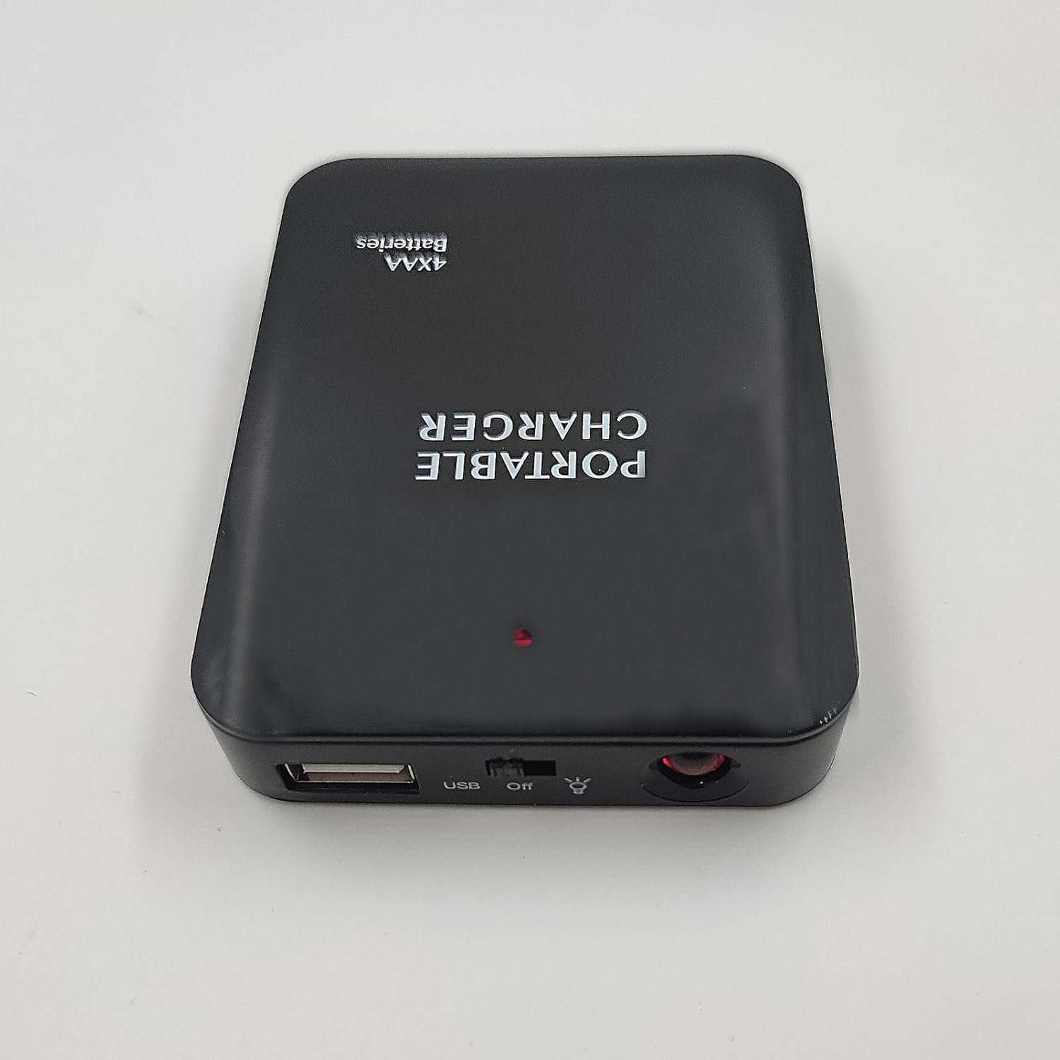 Battery Operated Phone Charger Emergency|USB Battery Powered Power Bank Portable 4 AA Batteries Powered Outlet (Black)