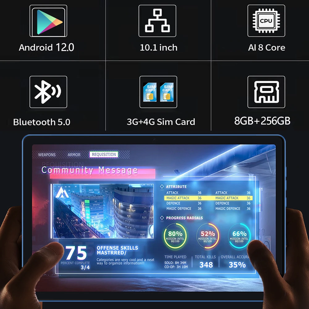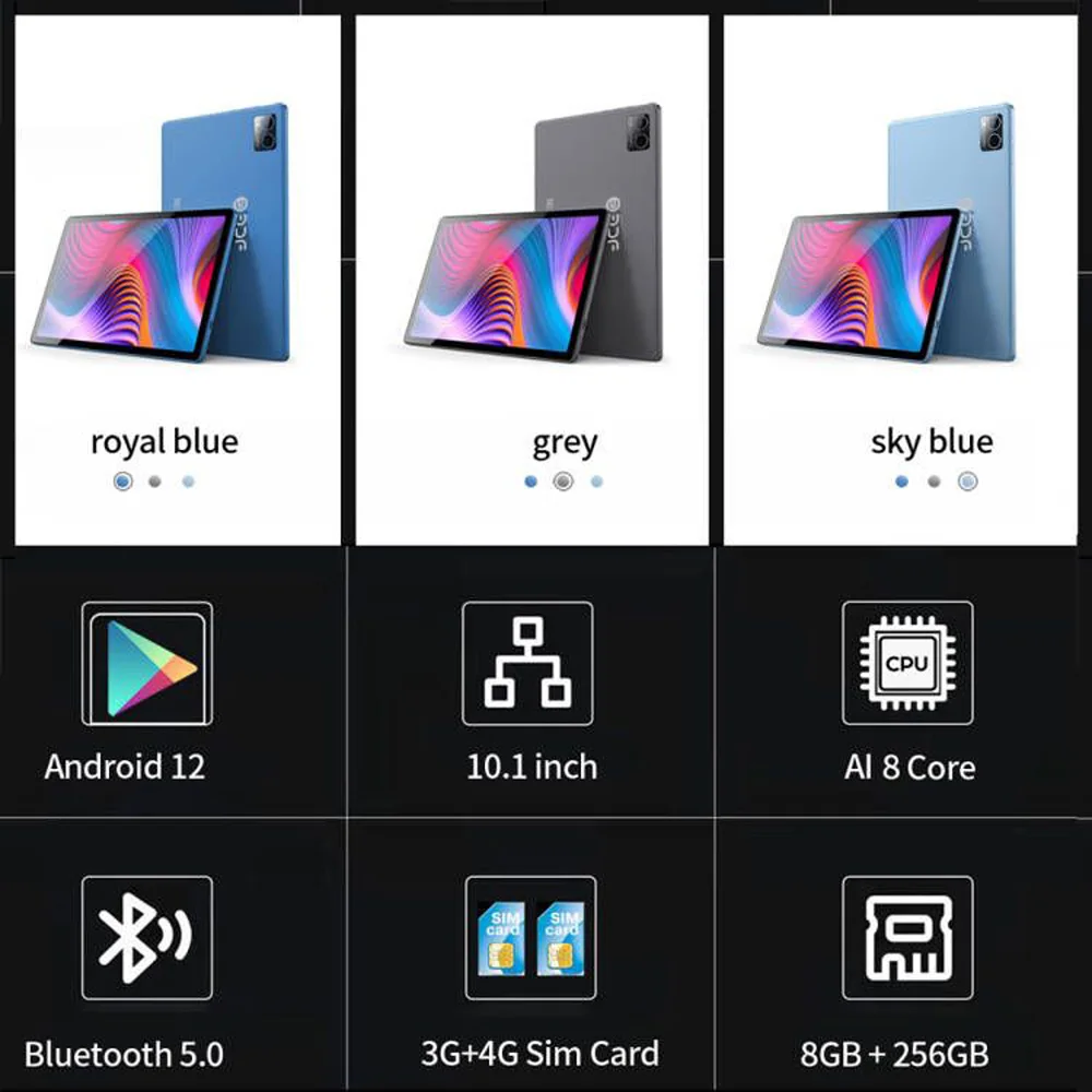 BDF P60 Tablet Pc 10.1 Inch 8GB RAM 256GB ROM Android 12 Octa Core 3G 4G LTE Double SIM Cards Global Version Google Tablets