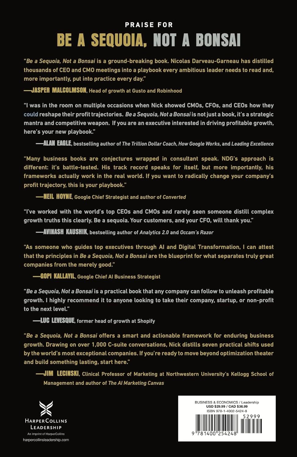 “Be a Sequoia, Not a Bonsai is a groundbreaking book. Nicolas Darveau-Garneau has distilled thousands of CEO and CMO meetings into a playbook every ambitious leader needs to read—and, more importantly, put into practice every day.” — Jasper Malcolmson, Head of Growth at Gusto and Robinhood