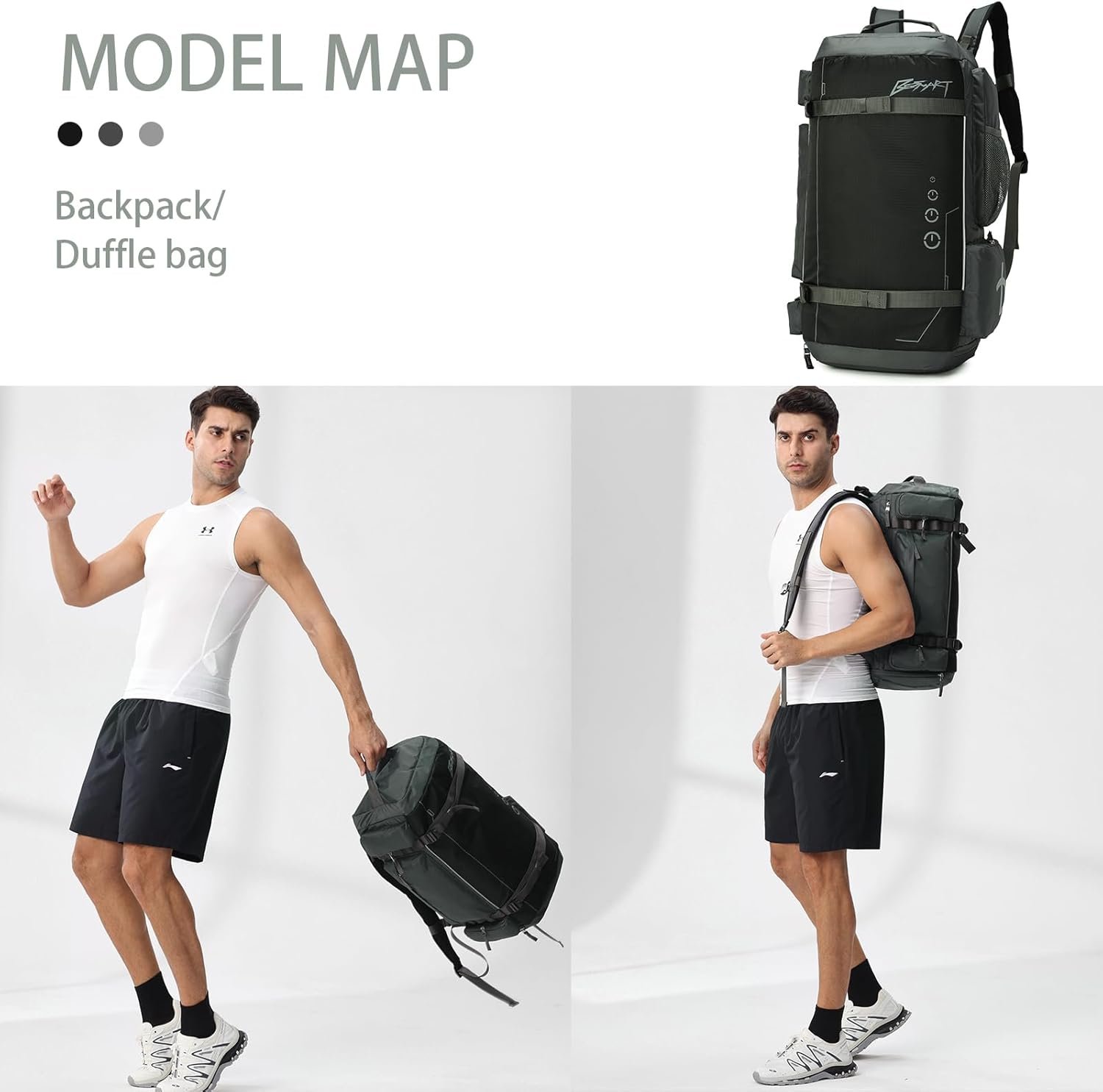 ⭐【Use as Duffel or Backpack】👍 This 2-way gym backpack is available two back ways for you to adjust freely. BE SMART gym backpack for men is designed with hideaway padded adjustable shoulder straps which can be easily stored away in back panel, transforming this sports backpack to hand bag. It is perfect for use as gym bag, sports bag, travel bag, weekend tote bag, swim bag, hospital bag, airplane bag etc.