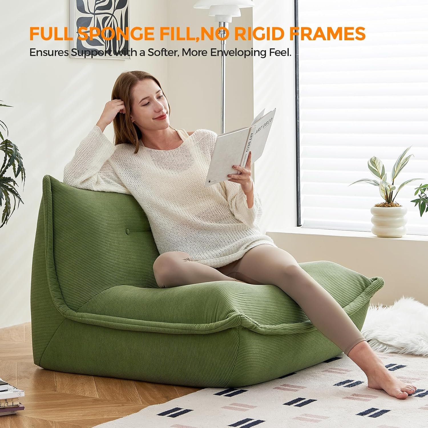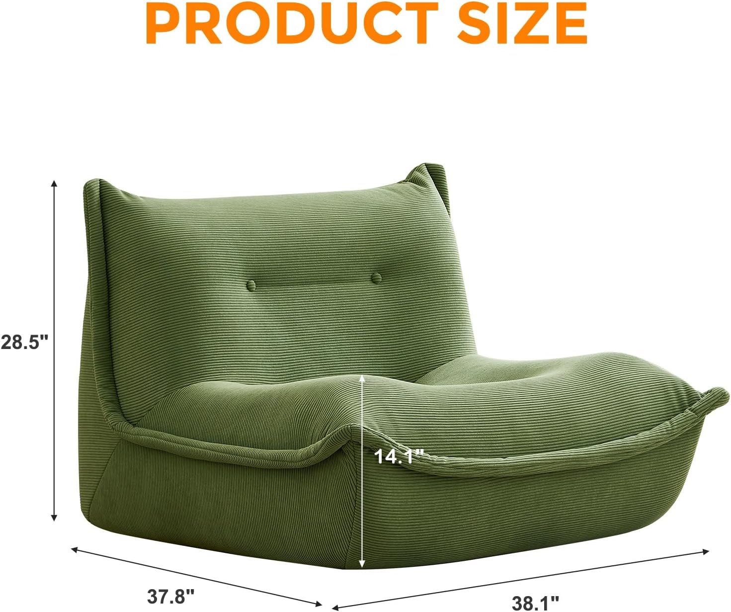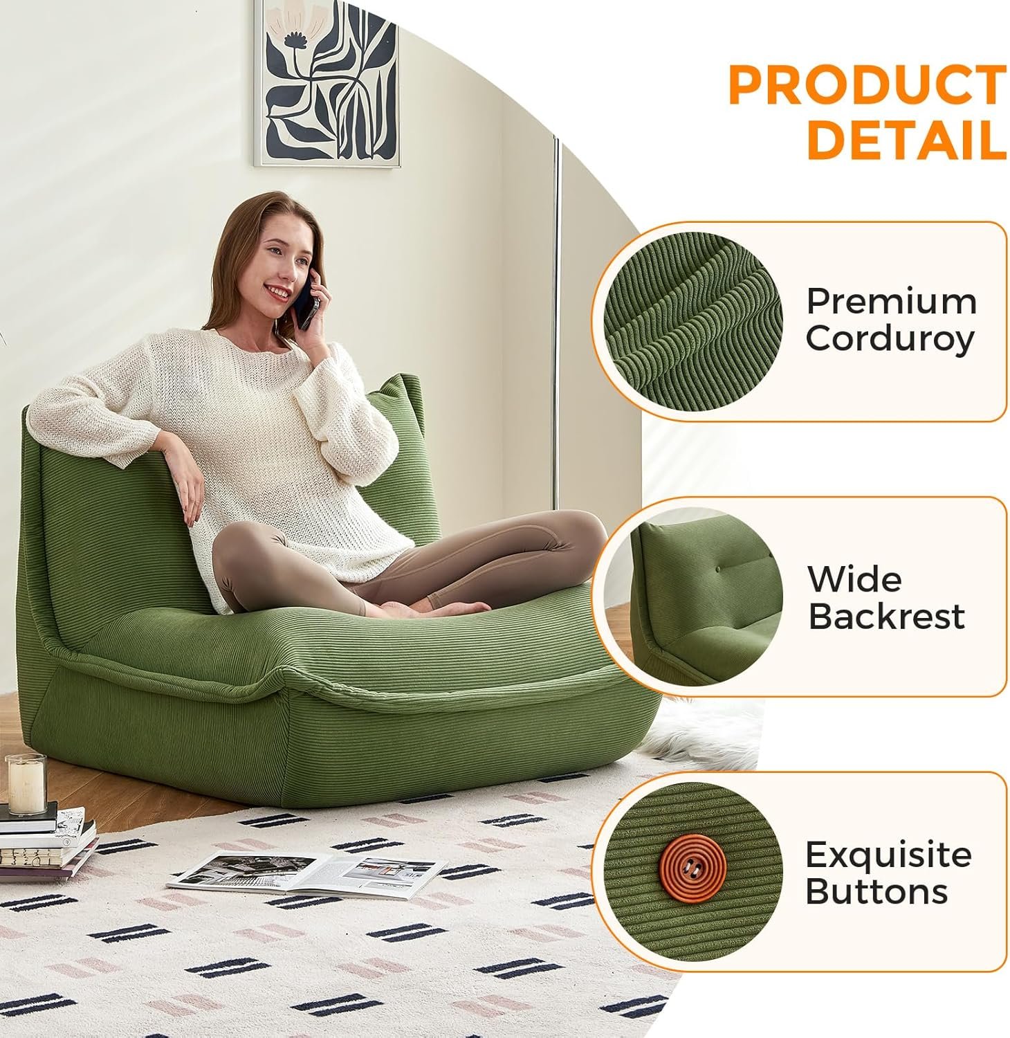 [Soft and Skin-friendly Fabric]: This green bean bag chair-single sofa chair is constructed using soft corduroy fabric that is not only skin-friendly but also thick enough to withstand long-term use. The durability of our chair is as impressive as its comfort ensuring you get the nice purchase experience.