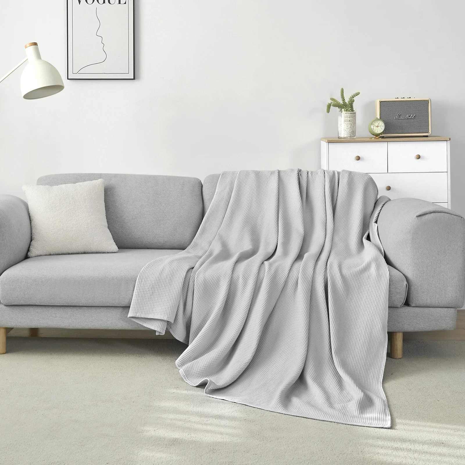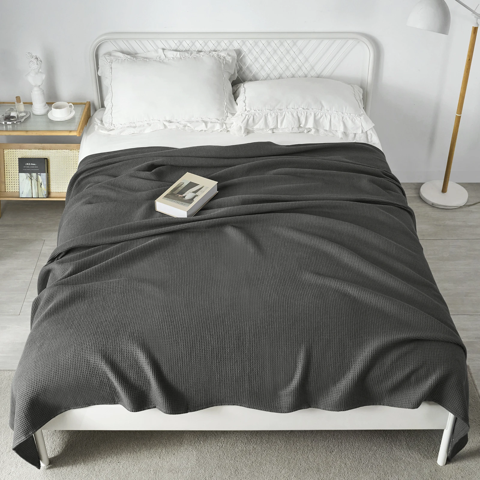 ✔ï¸Weapon look: the waffle look gives the cotton blanket a characteristic shadow effect and gives a simple honeycomb beauty. The elegant plain colour makes it practical and decorative at the same time