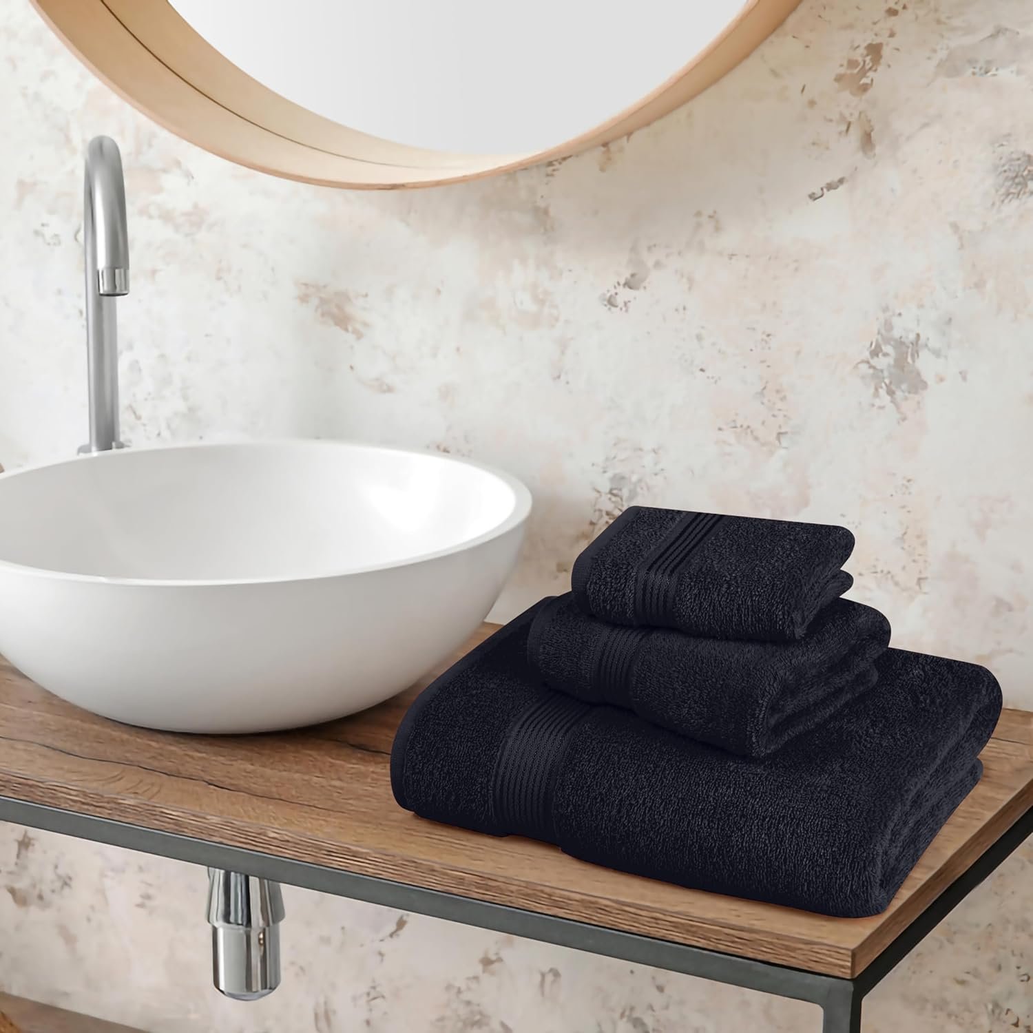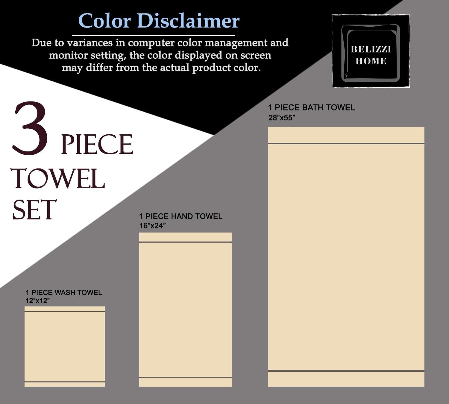 Belizzi Home Ultra Soft 3 Pack Cotton Towel Set, Contains a Bath Towel 28×55 inch, a Hand Towel 16×24 inch & a Wash Coth 12×12 inch, Ideal Everyday use, Compact & Lightweight – Black