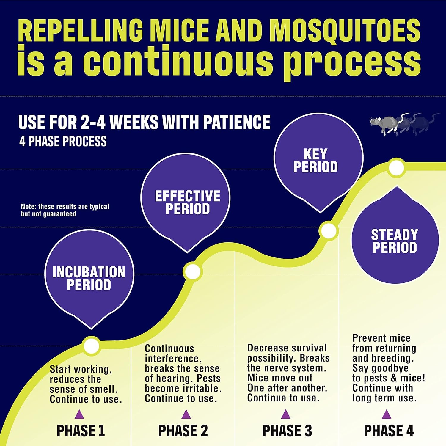 7. Best results will be observed after continuous use for 2-3 weeks. Initially, there may be an increase in mice and vermin activity as they attempt to escape from your house. This is a positive sign that the repeller is working effectively.