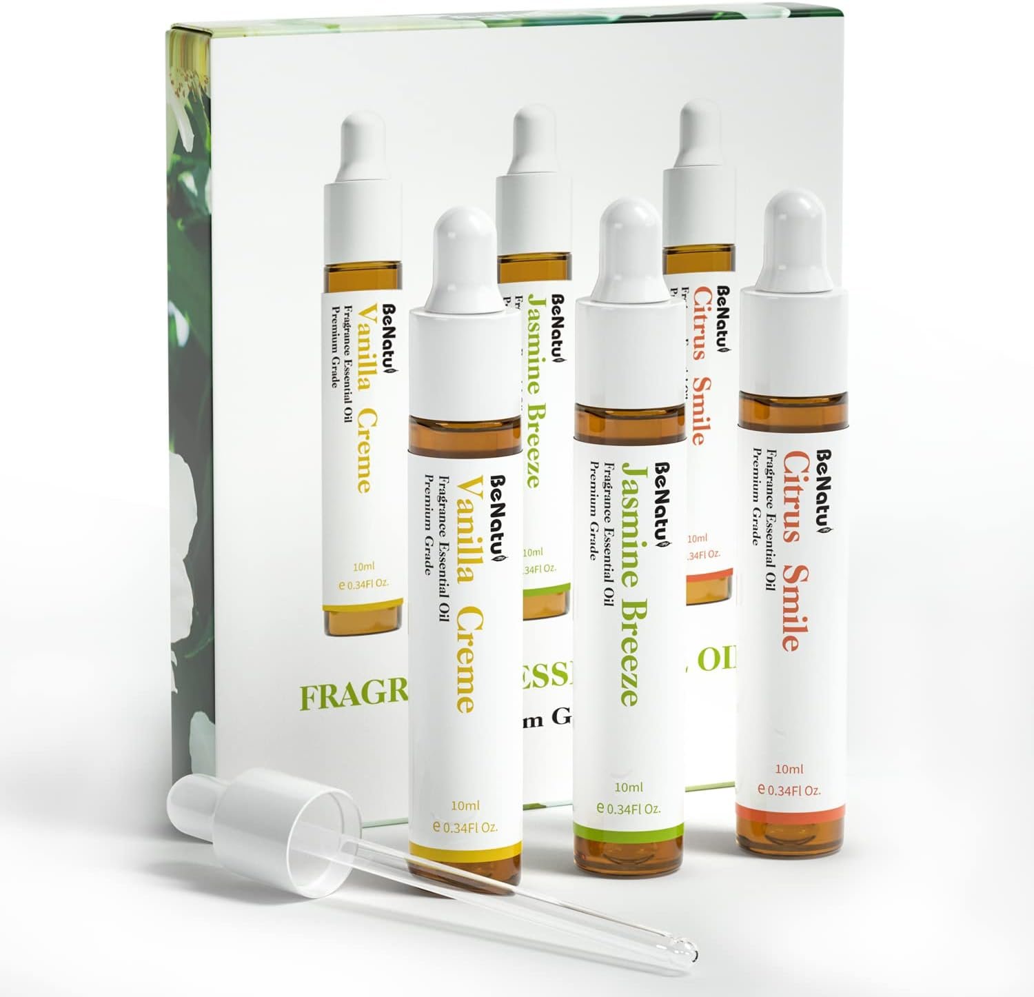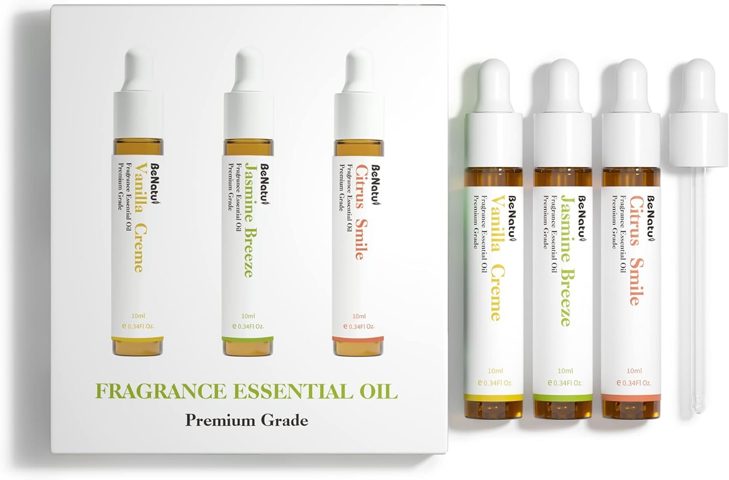Highly Concentrated Fragrance Oils: Set of Vanilla Creme, Jasmine Breeze, Citrus Smile, 0.34fl oz/10ml each. Diluted or undiluted depends on whether you like strong or light fragrance. (Don’t apply directly to the skin)