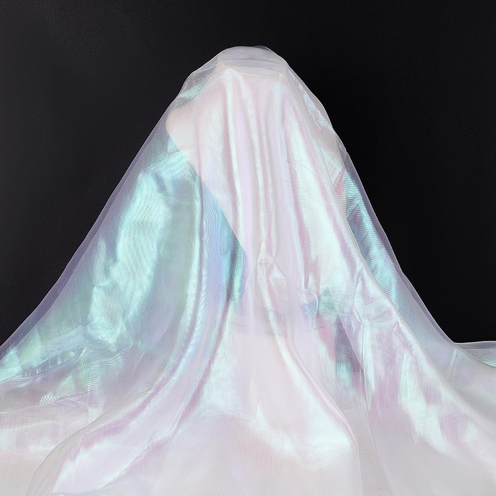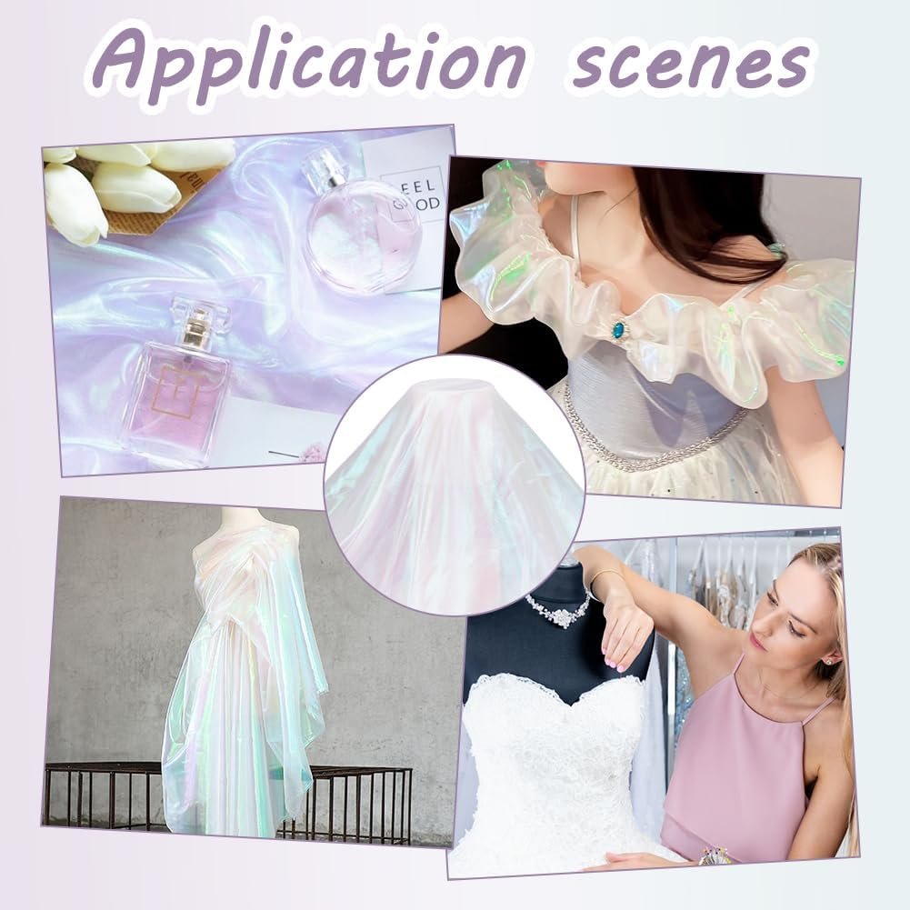 Product Type: Soft iridescent holographic gauze fabric with magic white color, beautiful and perfect decorative accessory for sewing craft.