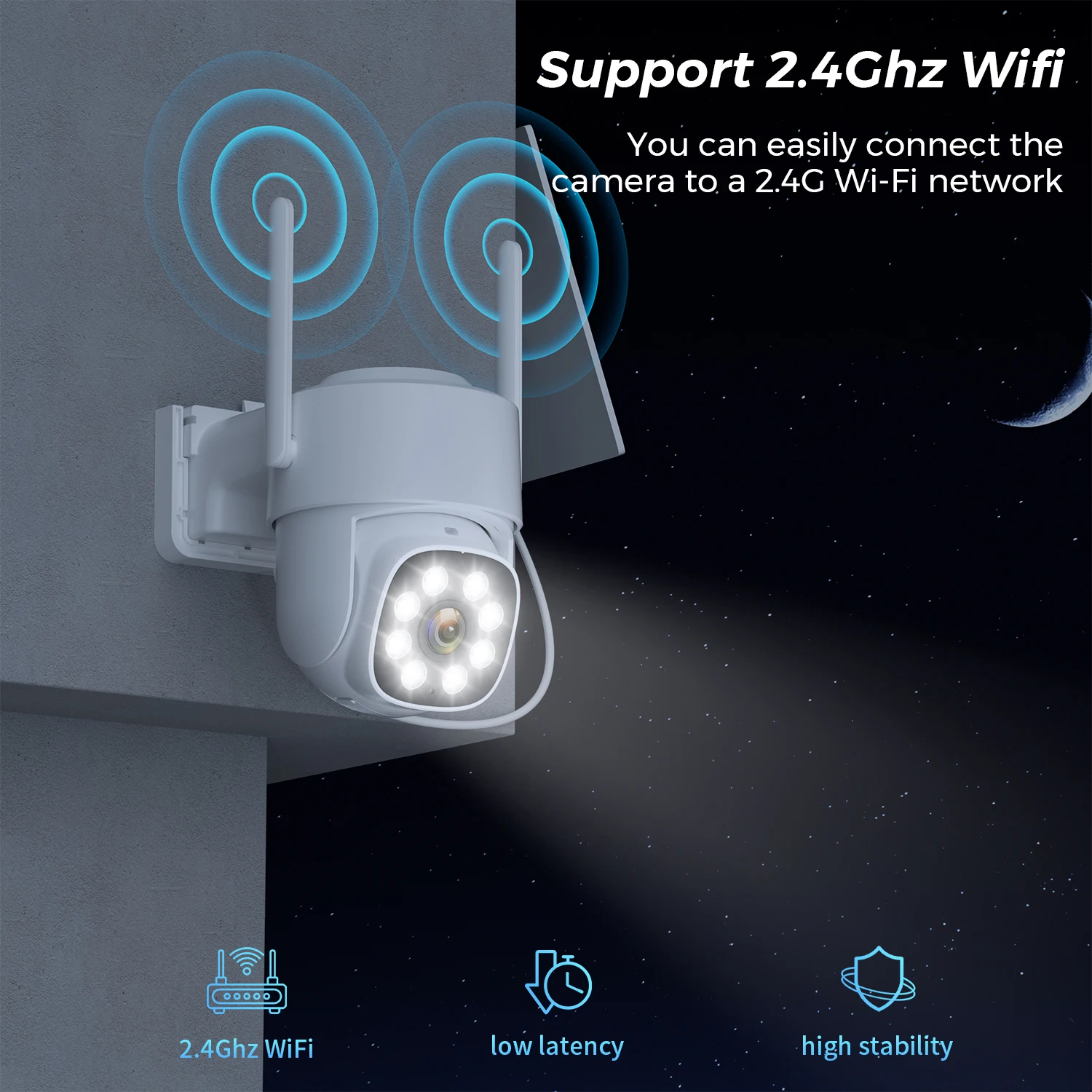 Buil-in 9000MA batteries, the solar panel can cyclically save the battery power to the battery camera, which is more energy-efficient, efficient and convenient to save electricity.