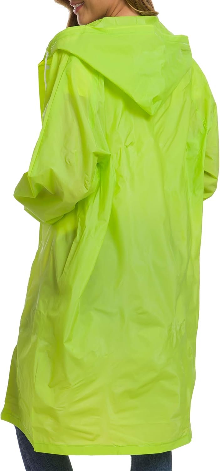Reusable Rain Poncho Long Clear Rain Jacket with Hood For Women Men Outdoor Wear