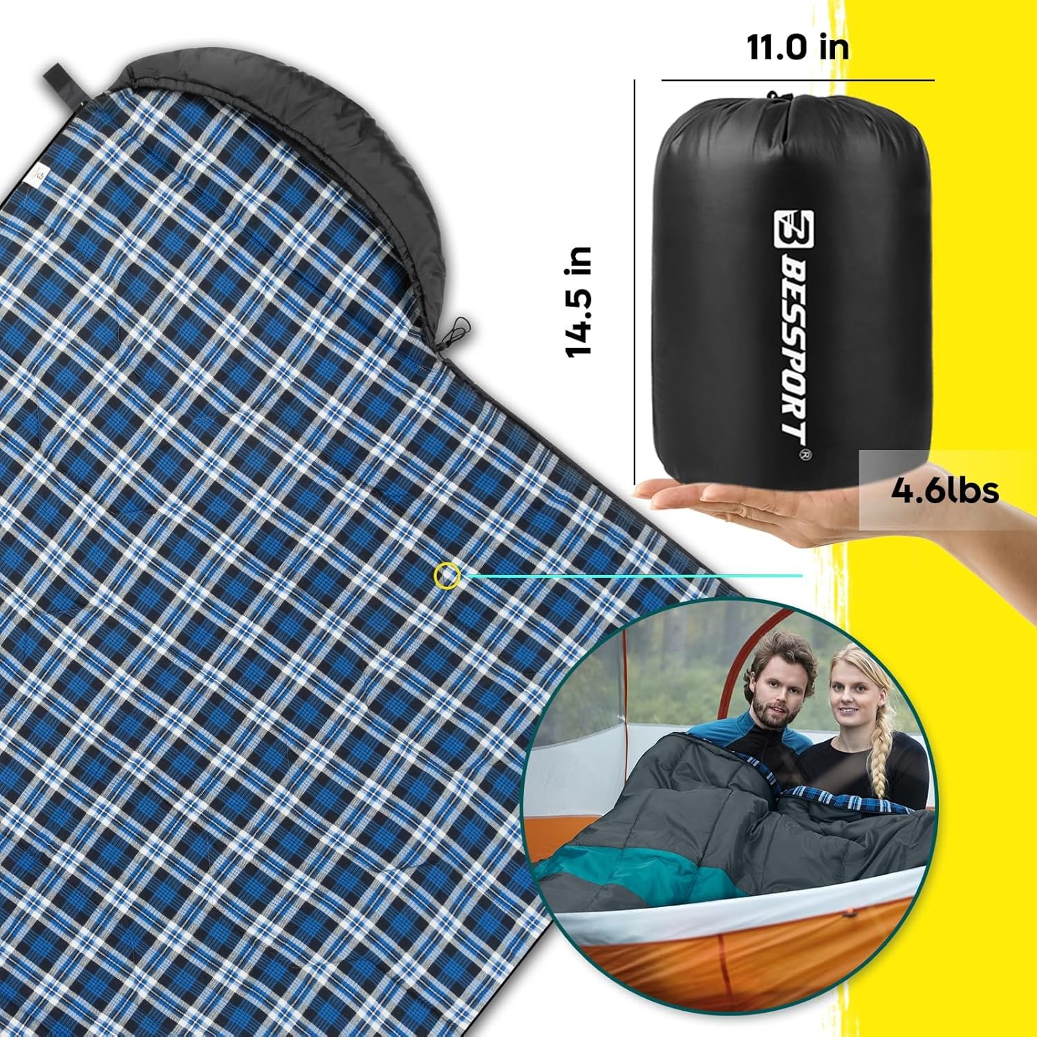 Bessport Sleeping Bag Winter | Flannel Lined 18℉ – 32℉ Extreme 3-4 Season Warm & Cool Weather Adult Sleeping Bags Large | Lightweight, Waterproof for Camping, Backpacking, Hiking