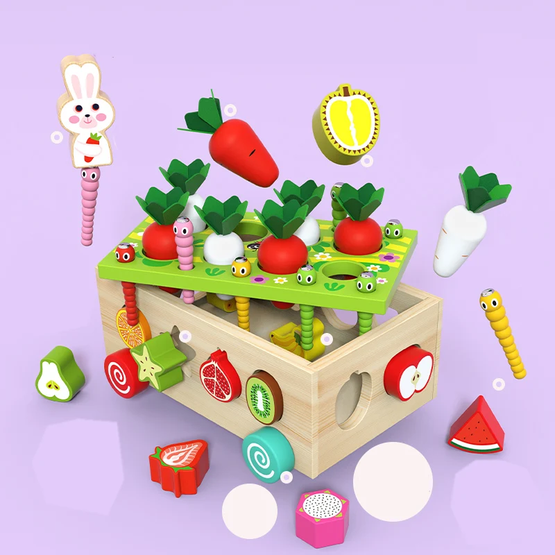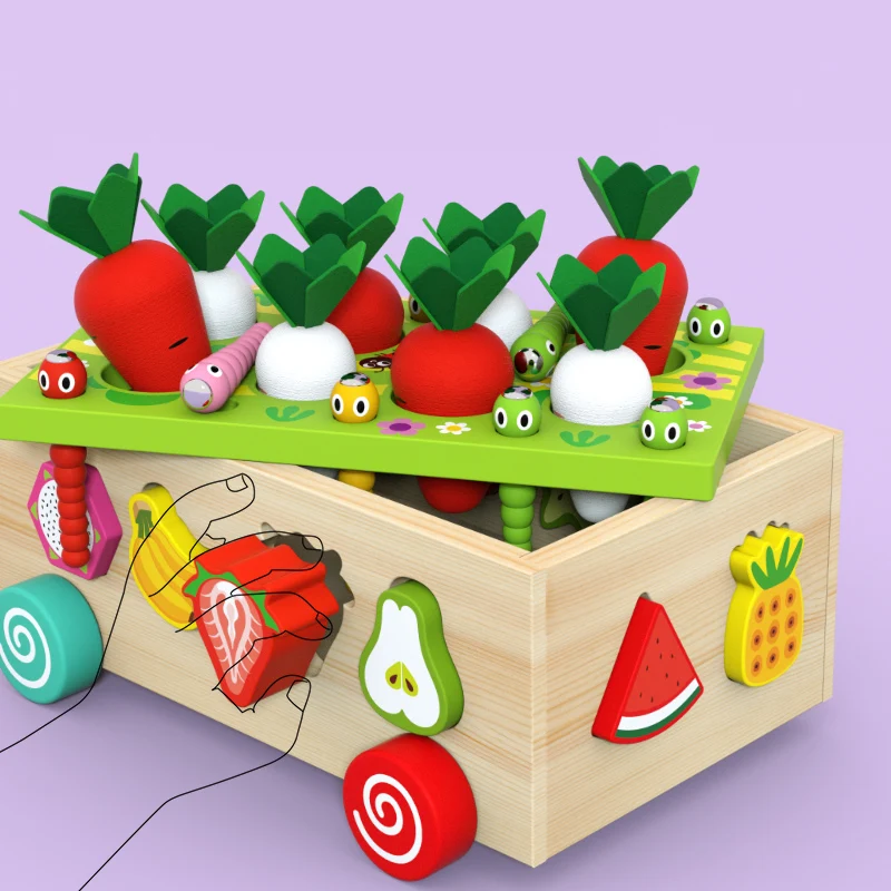 Best Selling Magnetic Fishing Wooden Radish Fruit Cart Shape Matching Blocks Montessori Educational Toys For Children