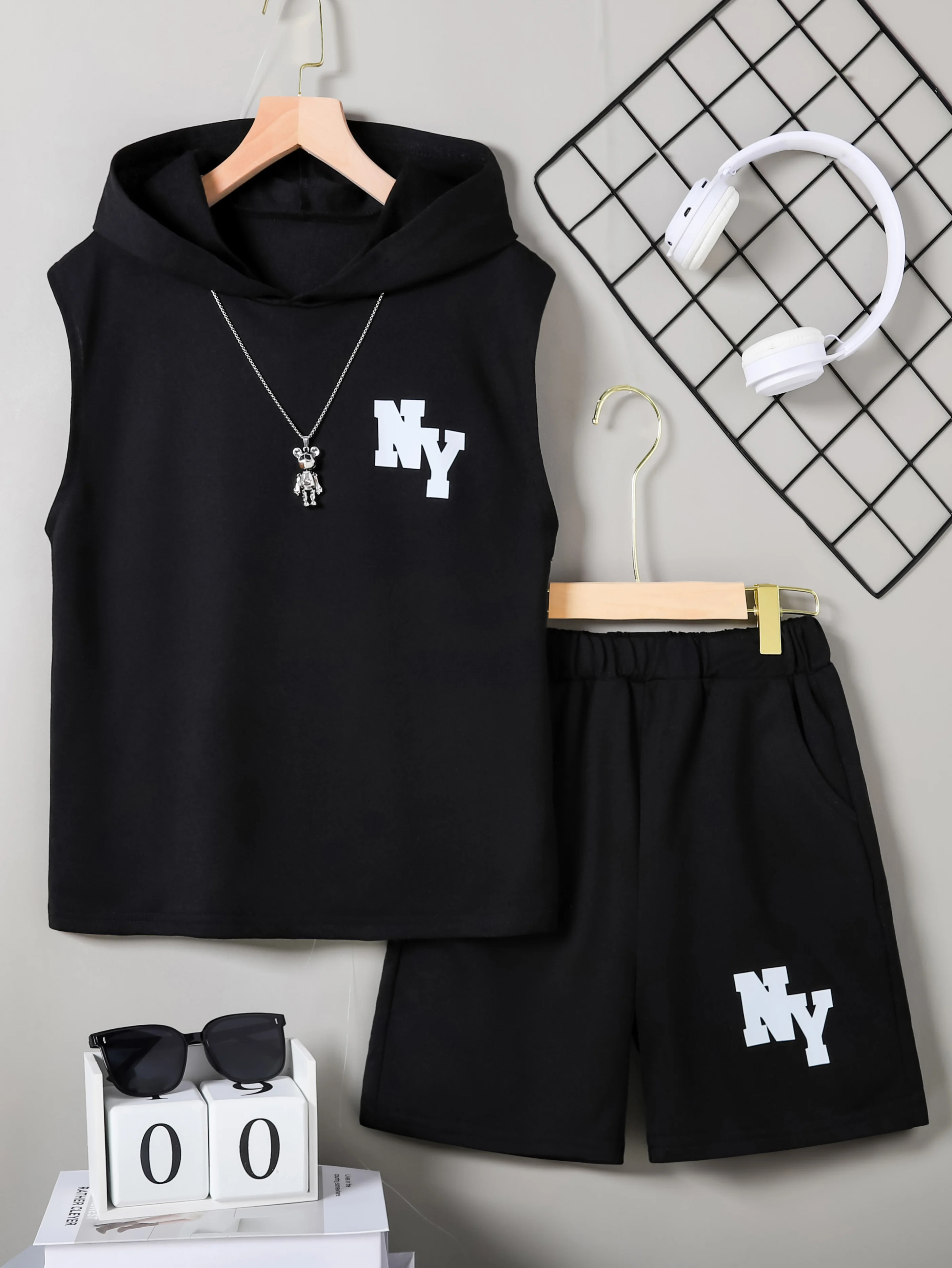 1 review for Best-Selling New Style Boys’ Letter Printed Sleeveless Hooded Tops, Shorts, Sportswear Suits, Casual Style
