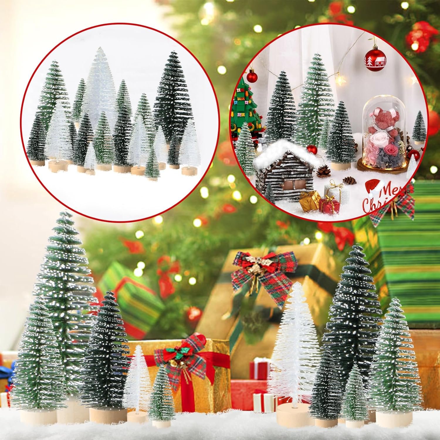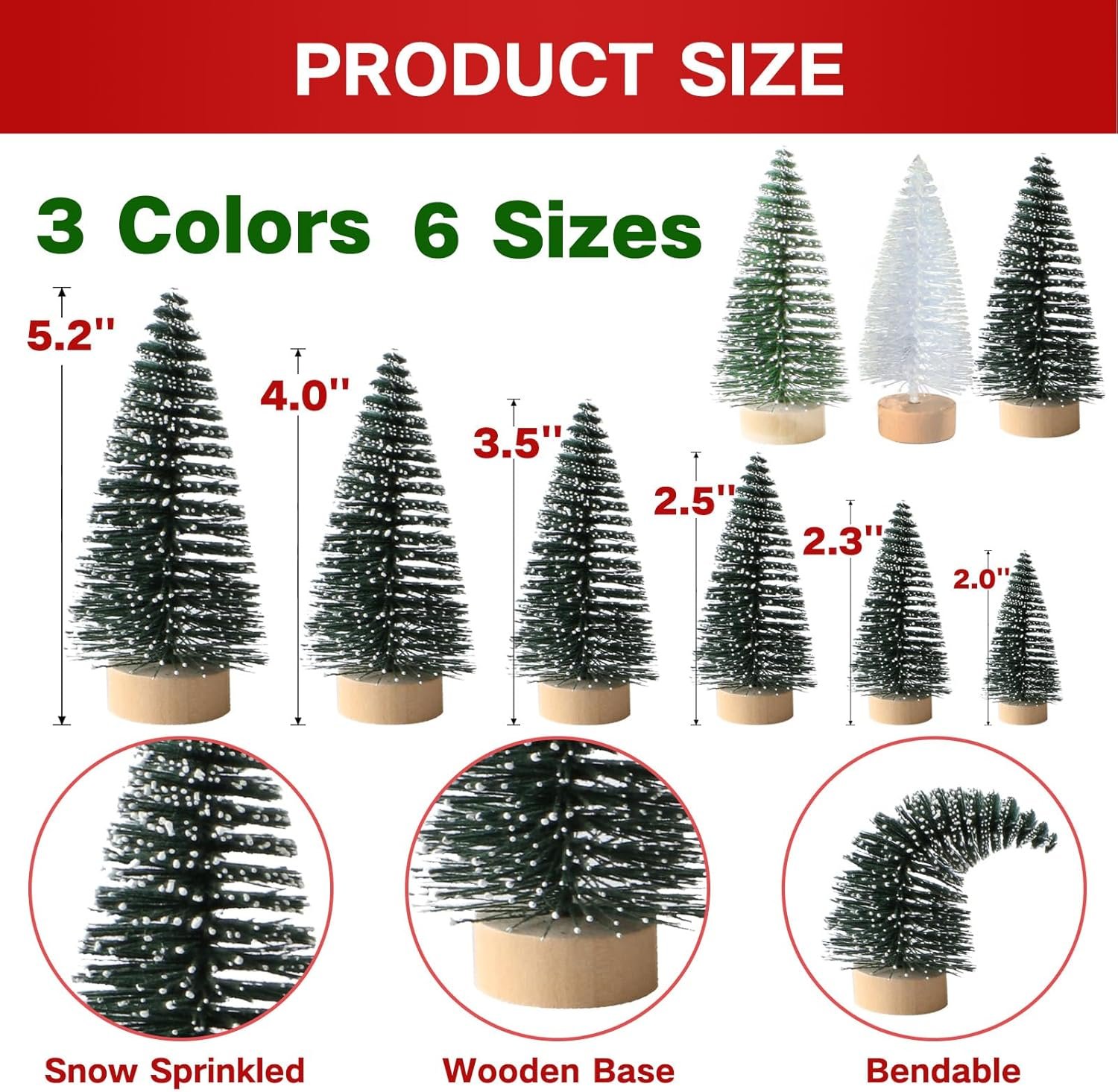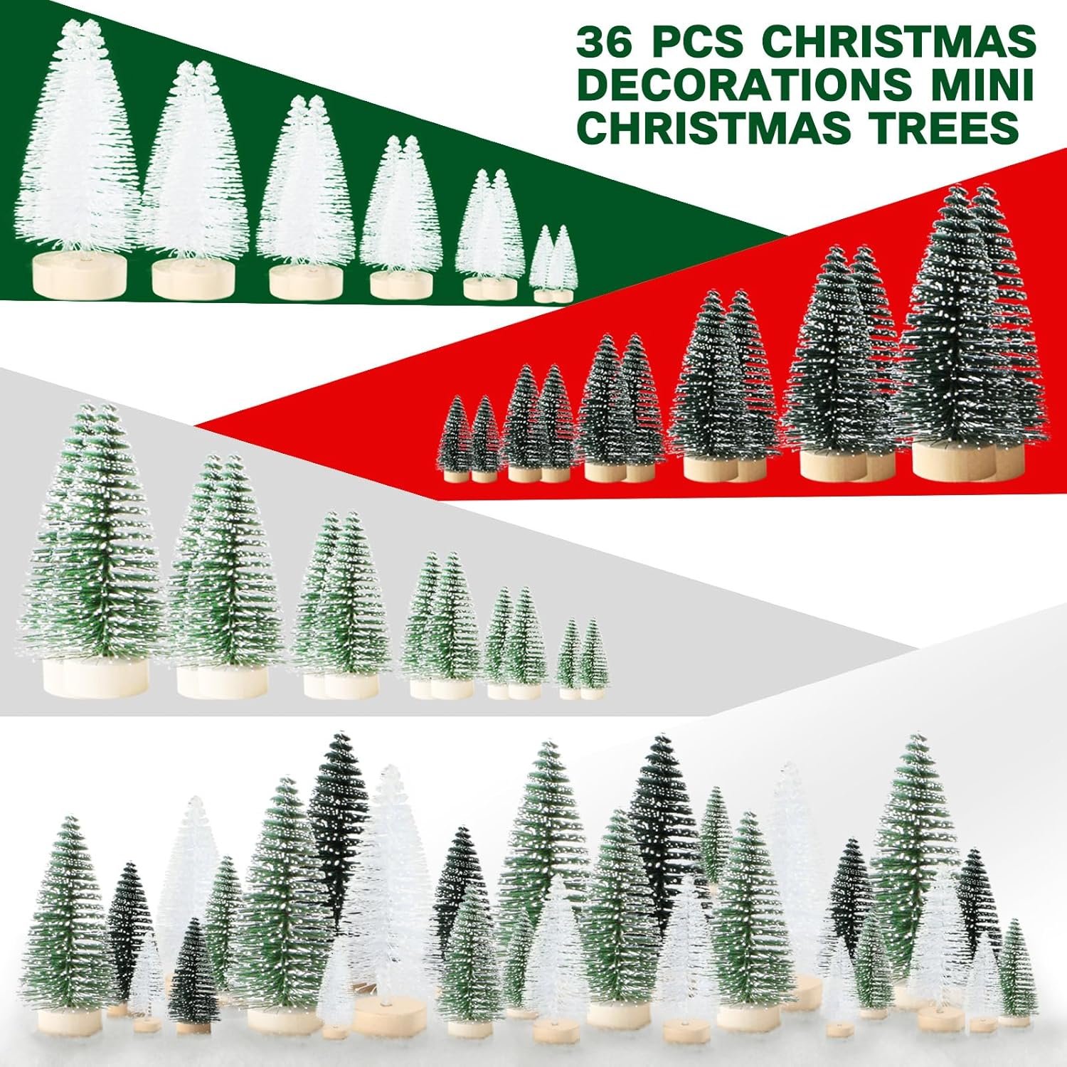 ❄【Miniature Fake Christmas Tree Set】Premium Mini Christmas tree made of sisal silk and plastic with durable wooden base, easy to stand .The small Christmas tree is soft and bendable, suitable for create a snow white party decorations or vintage Christmas decorations. You will get 36pcs little Christmas trees with dark green, green and white. 6 sizes 2-5.2 inch. Different styles and sizes to meet your different need for holiday decor and Christmas room decor. DIY a snow forest.