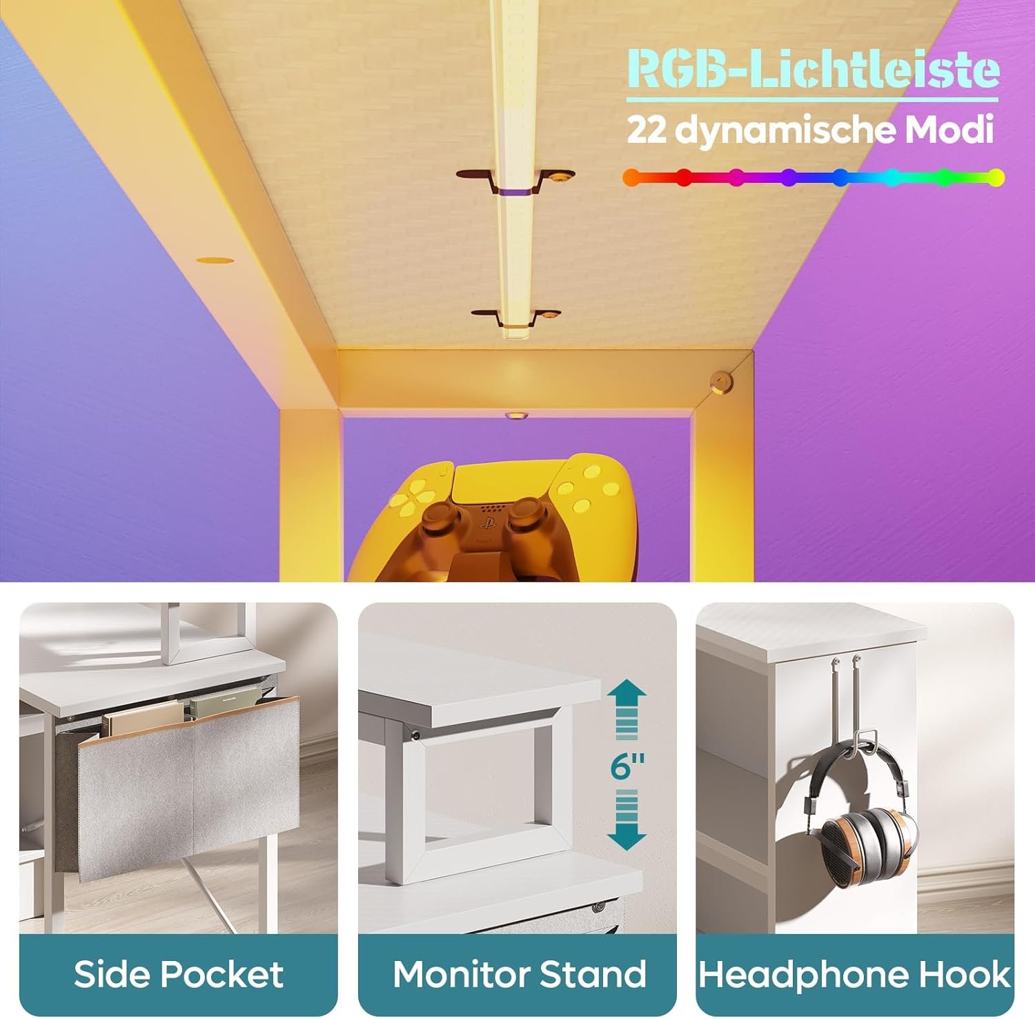 【LED Monitor Stand】The removable monitor stand comes with an LED light strip that offers 7 colors and 22 modes, so you can switch the light color at will to create an immersive gaming atmosphere. The monitor stand elevates your line of sight and corrects your sitting posture while saving desktop space.