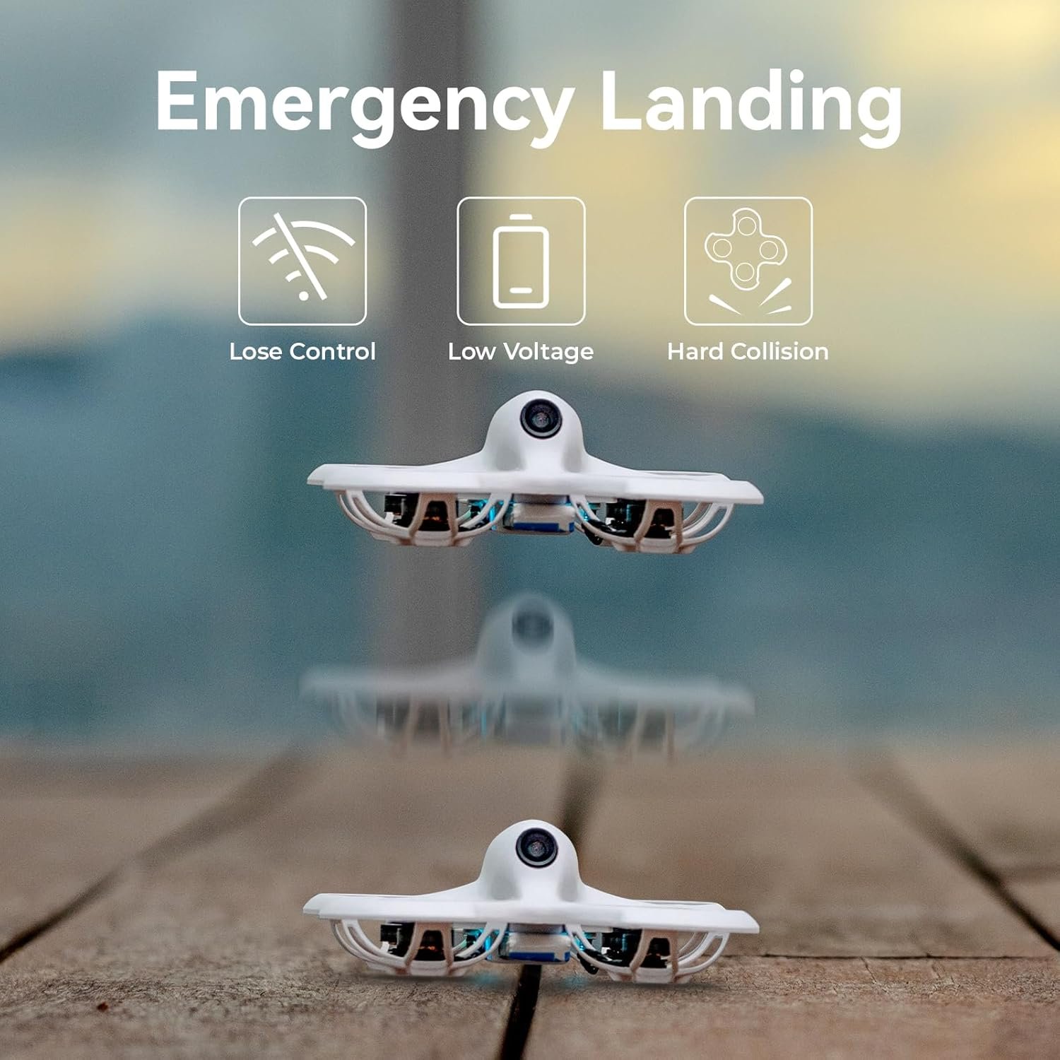🎄【Self-protection Function】The Cetus Pro quadcopter has an excellent self-protection function. Which can make an emergency landing when it loses control or in low battery. It will also automatically disarm and drop on ground once it has a strong collision with the object. No more worry about loss and crash