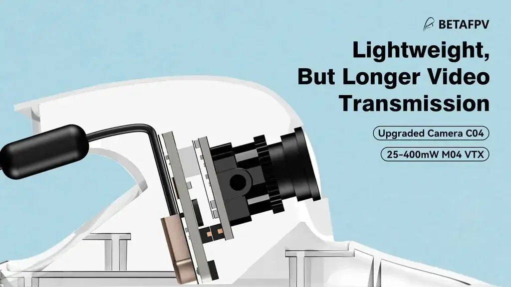 Cetus X Brushless Quadcopter comes with M04 25-450mW VTX and C04 FPV camera. M04 25-450mW VTX features a lightweight and adjustable output power for longer distance flying. Combining this VTX and the excellent radio link ExpressLRS 2.4G, pilots can fly whoop drones longer to explore more possibilities and fun. In addition, C04 FPV camera (based on Caddx Nano Ant Camera/Runcam Nano 4) shows a better quality in FPV flight compared with C02 FPV camera.