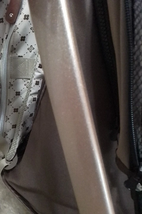 stroller is 5 stars!…. the price is worth the wait. more beautiful in person by fare!…. But the top is not waterproof, so you’ll need to get a clear stroller rain covering to keep with it!…. it’s glittery and gold on the gold frame but more rose gold in colorin real life but its cool looking & super easy to move with grace and not wake up the baby in stroller!…. The brakes on it are different but nice and easy and big!… easy to fold…. (( But don’t forget the RED safety clip on keeping it “open” and not folding BACK UP ON THE BABY THOUGH…. )) And folds slim to but in car well…. has one mommy cup holder at top of handle bar where parents push the stroller, which is needed and super nice and amazing!….