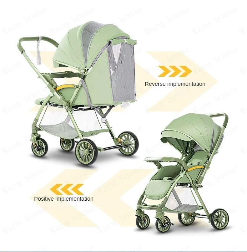 Bi-directional High Landscape Baby Stroller Can Sit or Lie Down Four Wheel Shock Absorber Stroller Lightweight Foldable Handcart