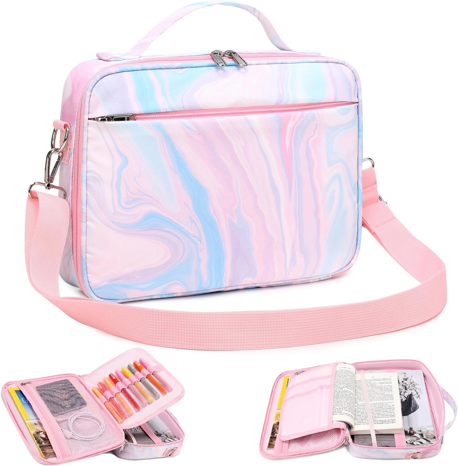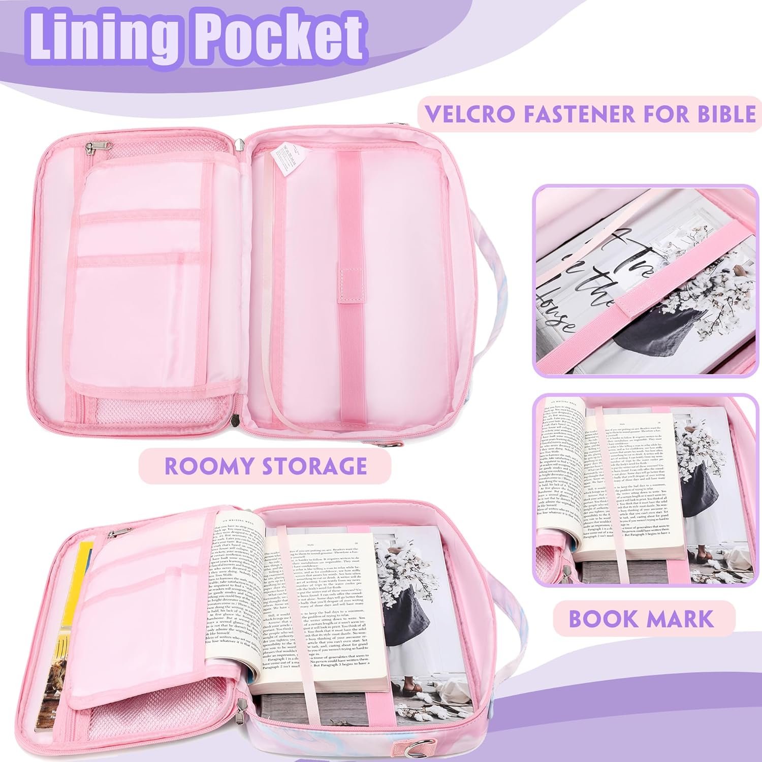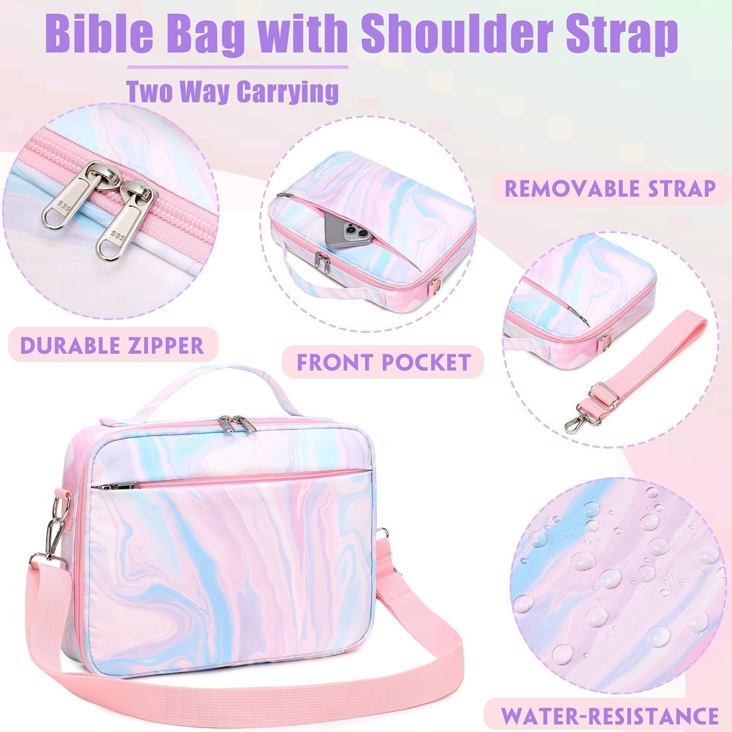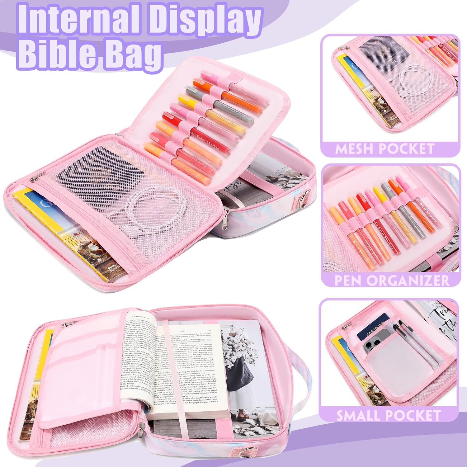 Bible Cover Case for Women Grils Bible Cover with Shoulder Strap Bible Case for Bible Study Accessories-Ideal Gift for Women and Girls (Mable Pink)