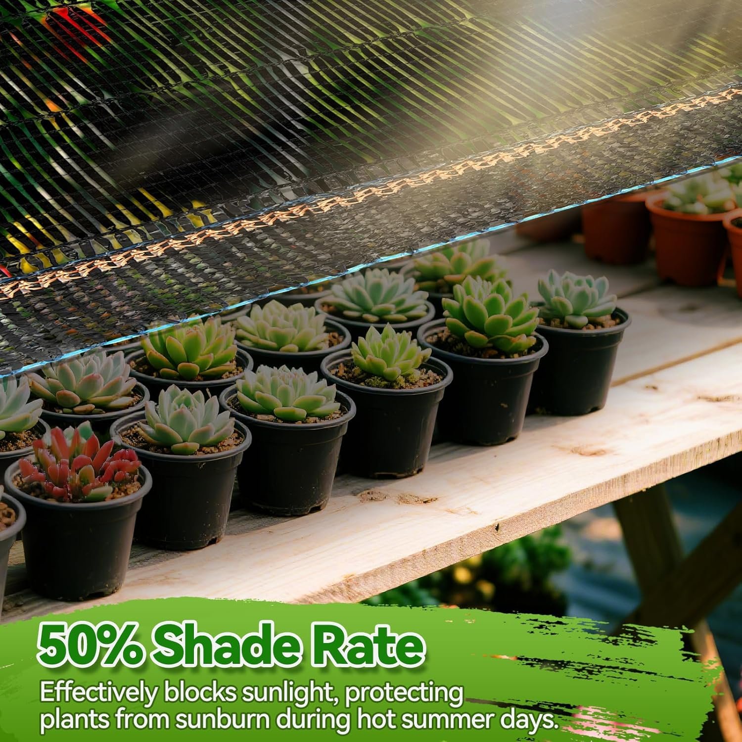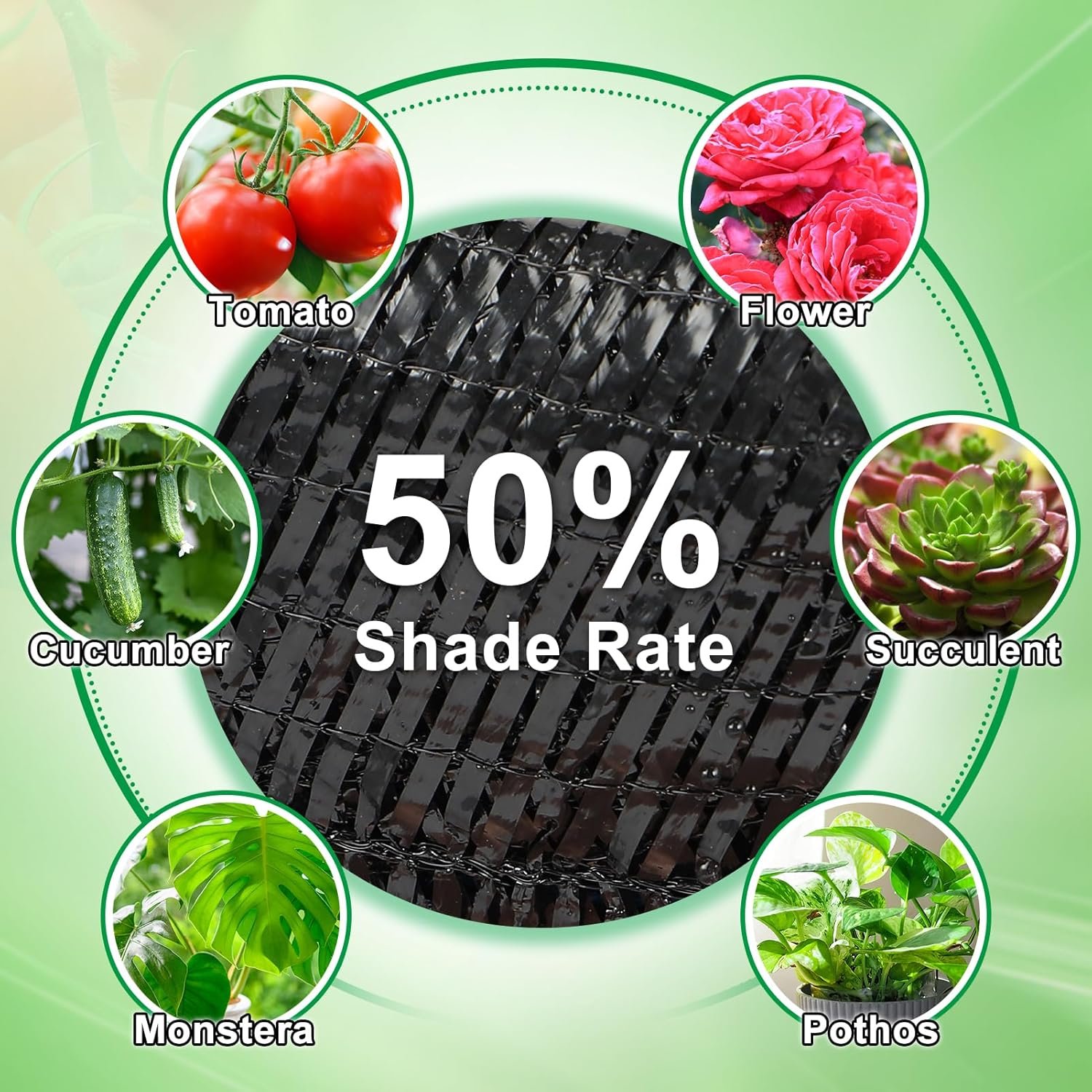 Perfect 50% Shade Rate Design: Our 50% shade cloth is suitable for shading tomato, cucumber, succulent, monstera, green radish, flower, etc. It can ensure sufficient photosynthesis while preventing plants from being burned by the summer’s midday sun.