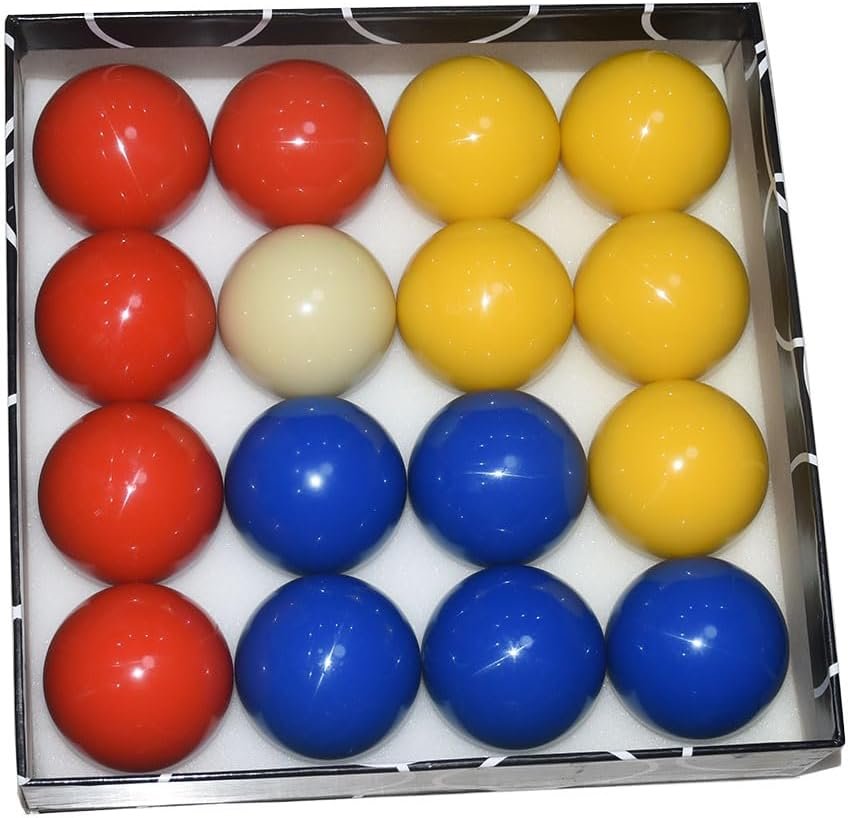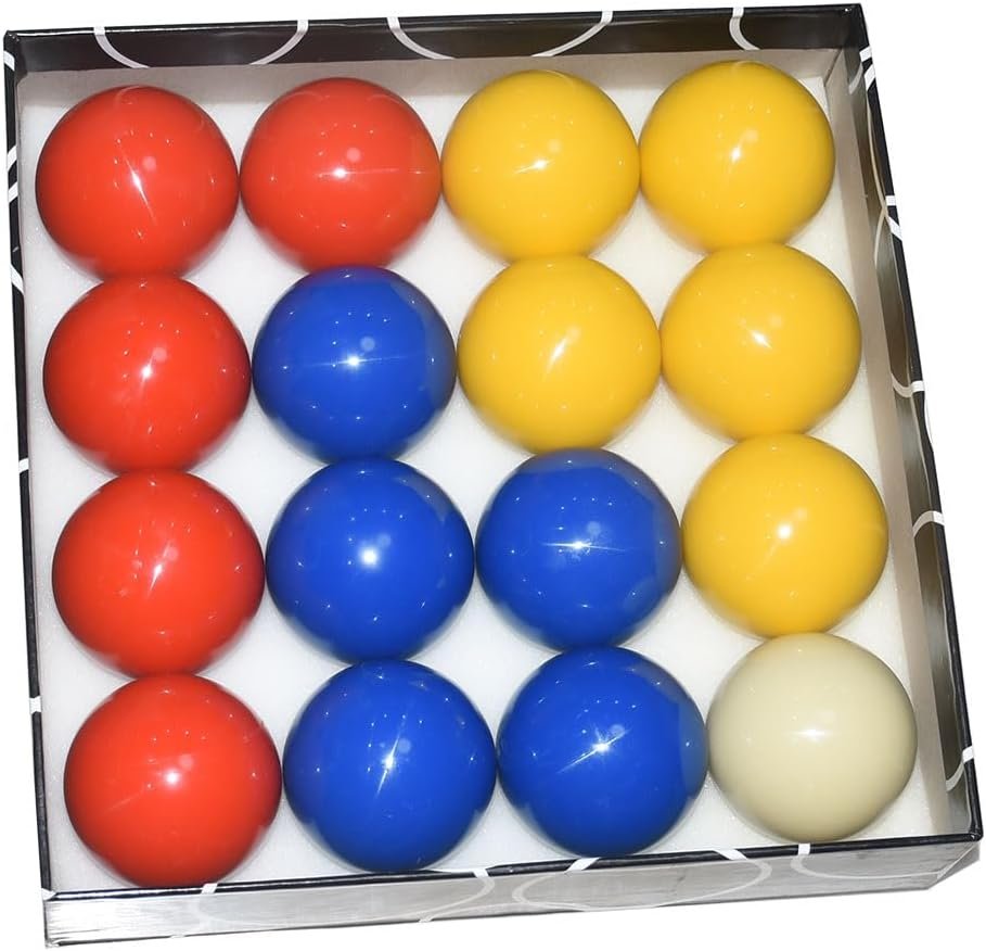This Billiard Balls Set includes 16 billard balls, 5 red balls,5 bule balls, 5 yellow balls, and 1 white cue ball.