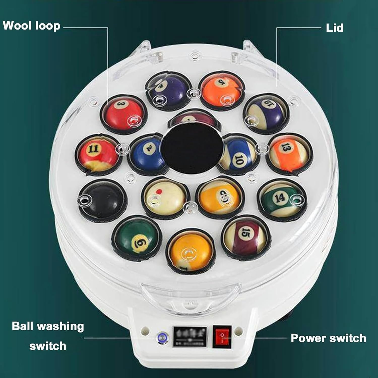 Billiard Cleaning Machine, Cleaner and Puller of Billiard Balls, Cleaning, Polishing and Pool Ball Care, for 16 Balls ~/