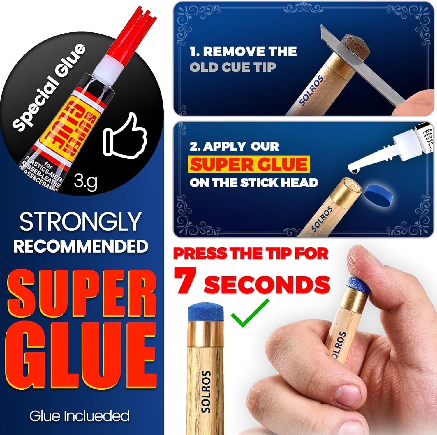 Billiard Pool Cue Tips – Pool Cue Stick Tips Replacement Repair Kit Billiard Cue Tips with Storage Box for Pool Table Cues Stick Tips Head and Leather Snooker Stick – SOLROS