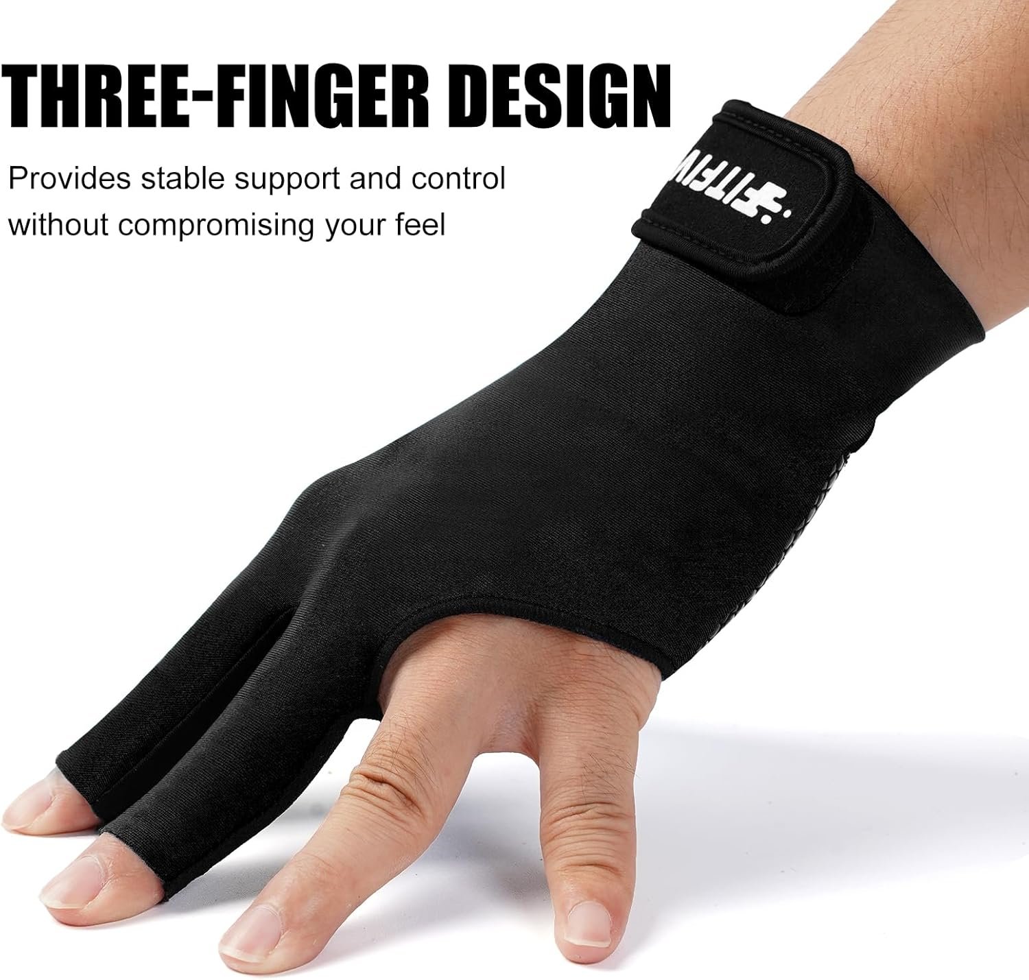 Billiard Pool Glove for Left Hand 3 Finger, Durable Double Stitching, Snooker Cue Sport Glove Adjustable Popular Sizes for Men & Women