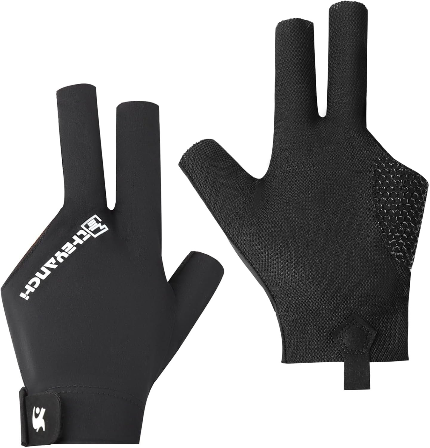 Billiard Pool Glove Left Hand 3 Finger Breathable Pool Gloves Snooker Cue Sport Glove Adjustable Popular Sizes for Men & Women Durable Double Stitching Elasticity Billiard Training Accessories